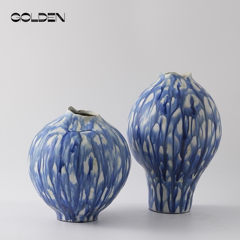侘寂风陶瓷手绘抽象异形花瓶软装饰品摆I件酒店民宿家居设计师陈