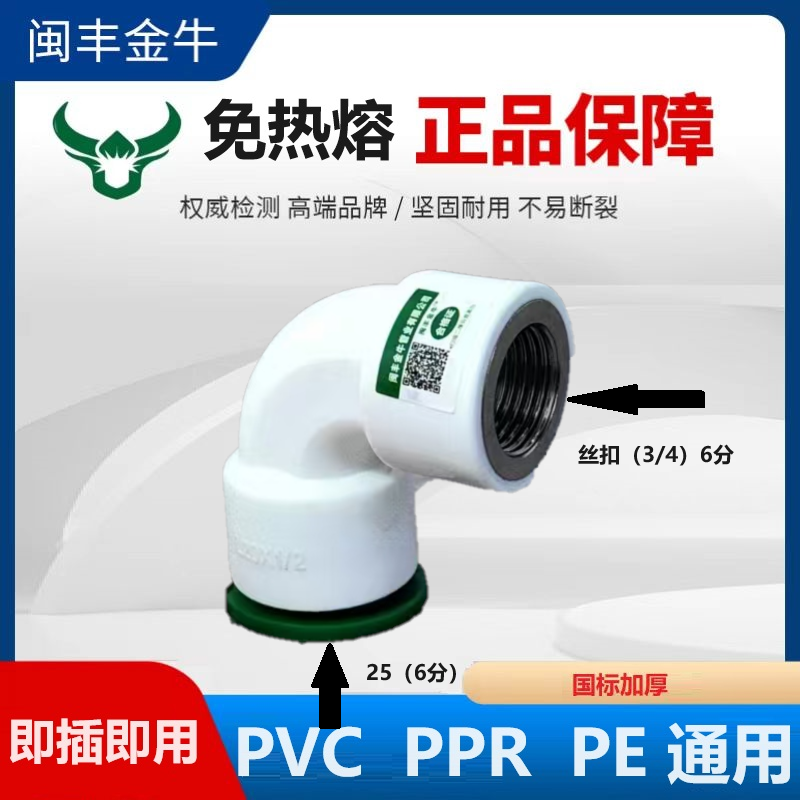 ppr快速接头4分6分快插自来水管配件pvc内丝免烫闽丰金牛品牌快接