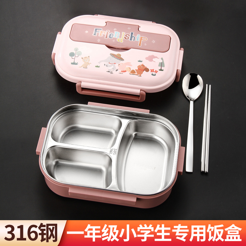 德国316不锈钢保温饭盒儿童小学生专用三格便当盒分格一人餐饭盒
