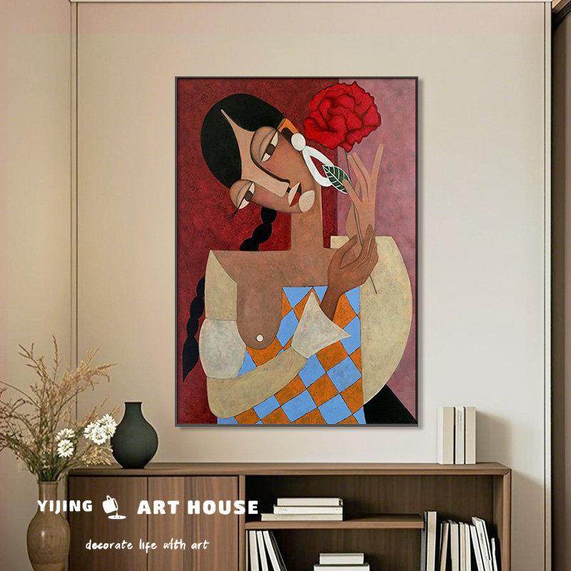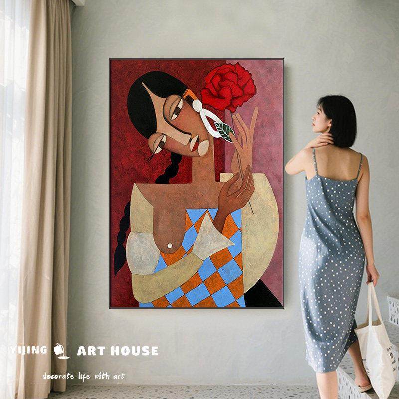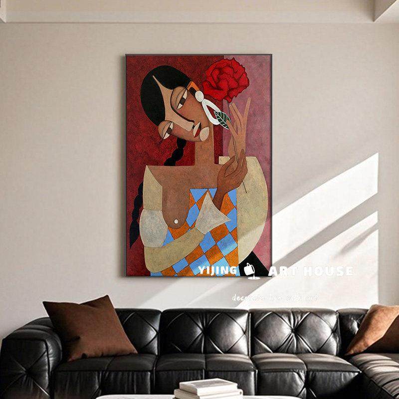 美式复古装饰画毕加索抽象客厅沙发背景墙落地画卧室小众艺术挂画