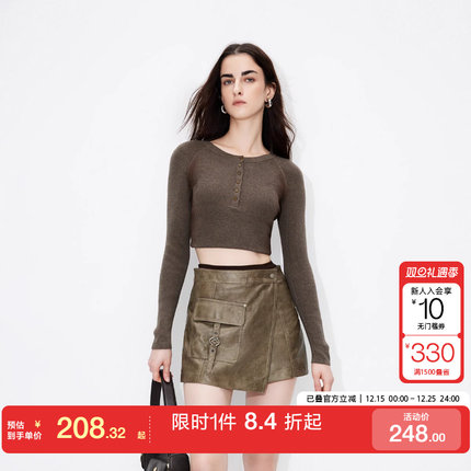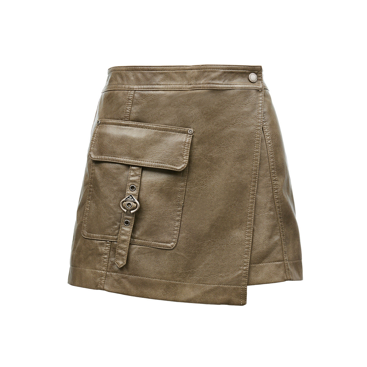 绫致ONLY秋冬新通勤潮酷高腰口袋PU假两件短裤休闲裤女
