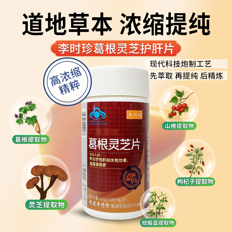 芙顺堂葛根灵芝护肝片辅助保护肝损伤熬夜喝酒养肝李时珍正品官方