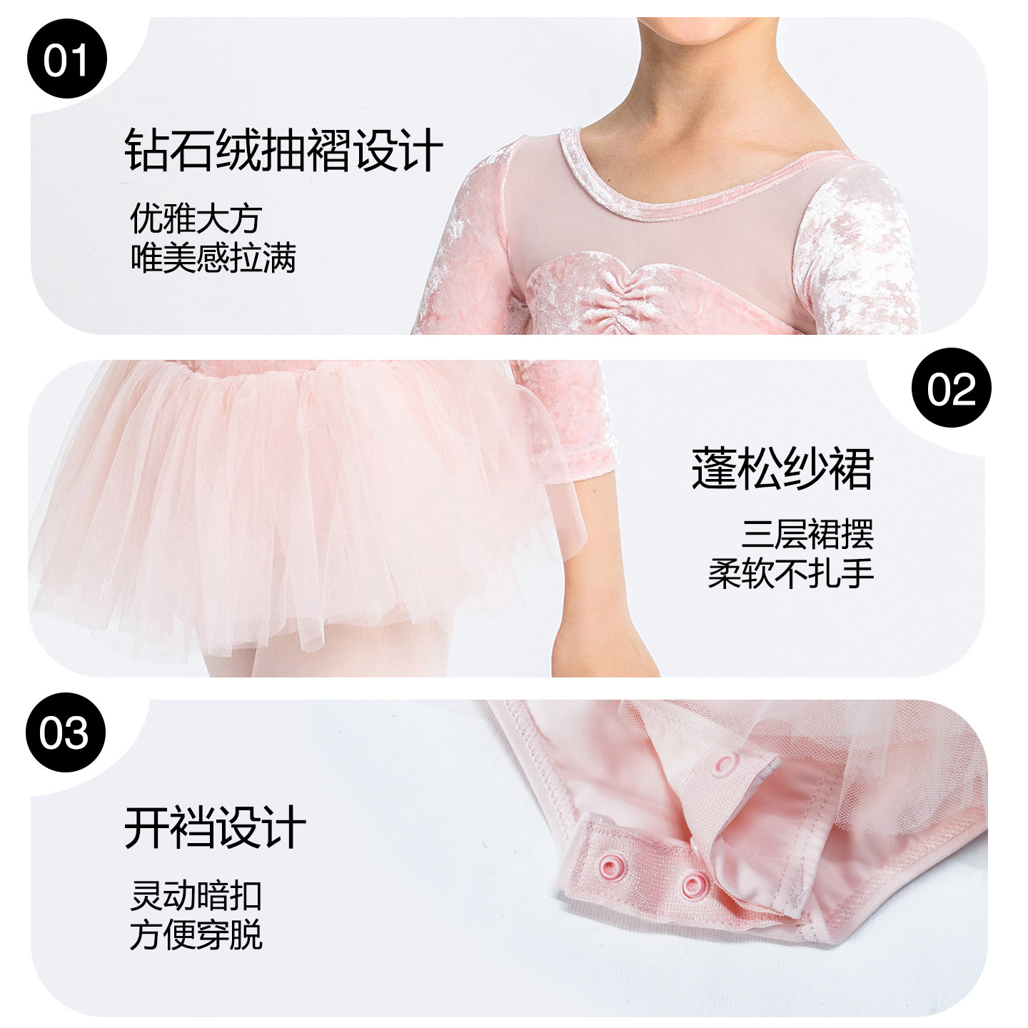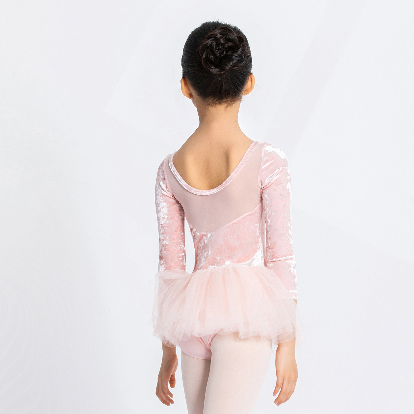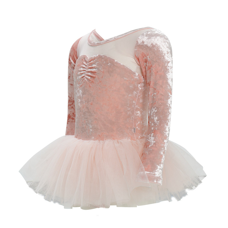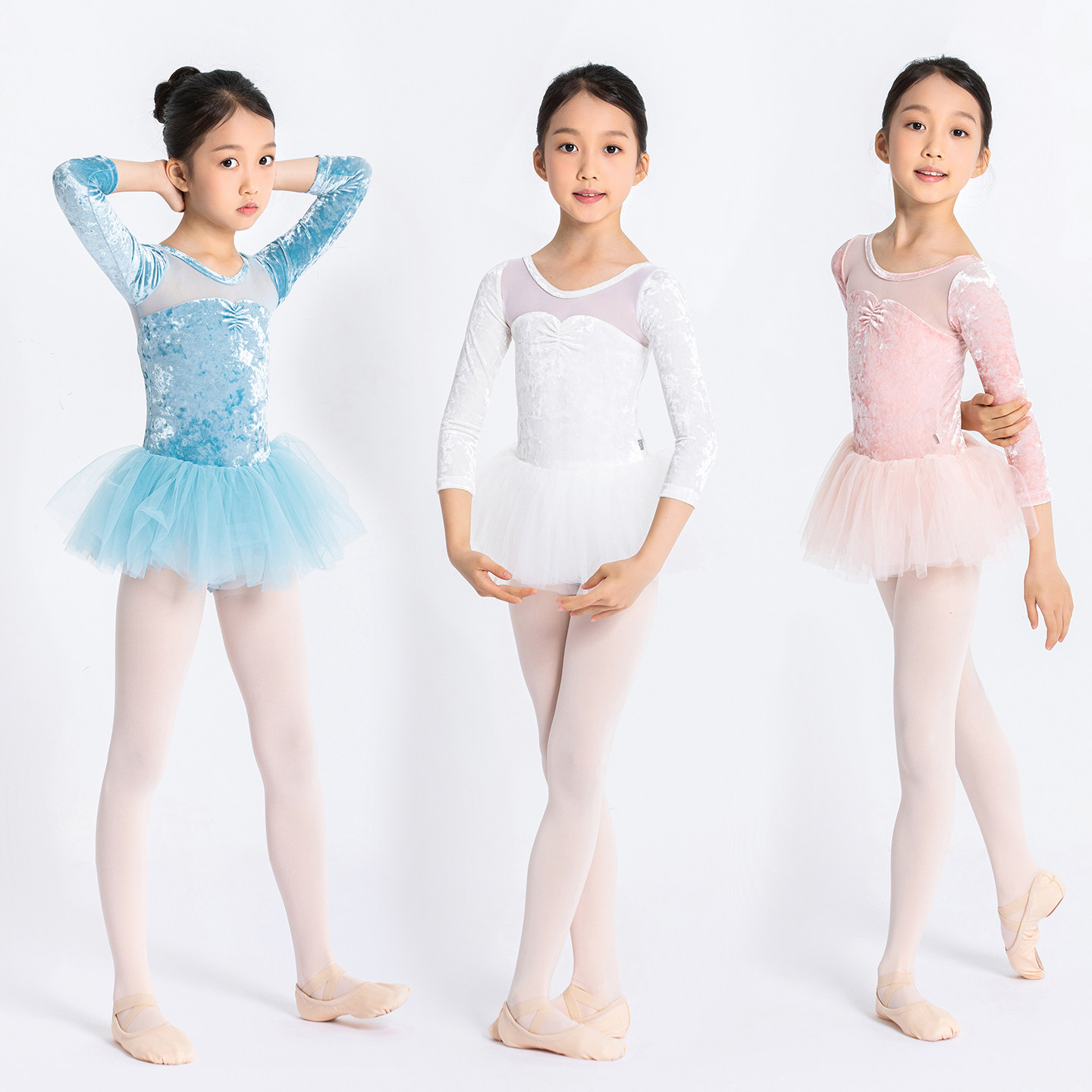 Sansha 三沙儿童芭蕾舞蹈服秋冬练功服钻石绒长袖蓬蓬裙开裆