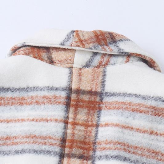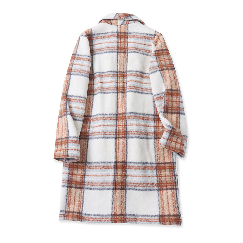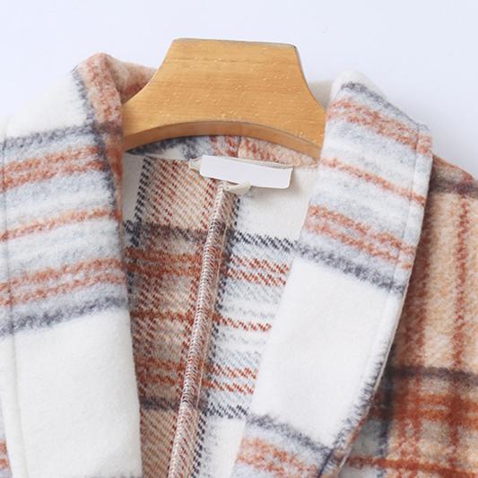 毛呢翻领格子大衣 秋冬新款长袖开衫百搭显瘦上衣女中长外套06452