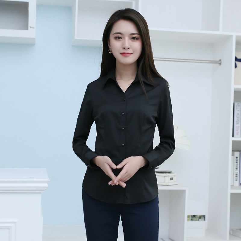好派春秋衬衫女长袖职业修身纯黑色工作服正装工装ol大码白色衬衣