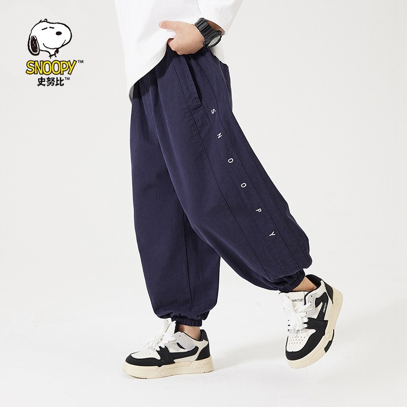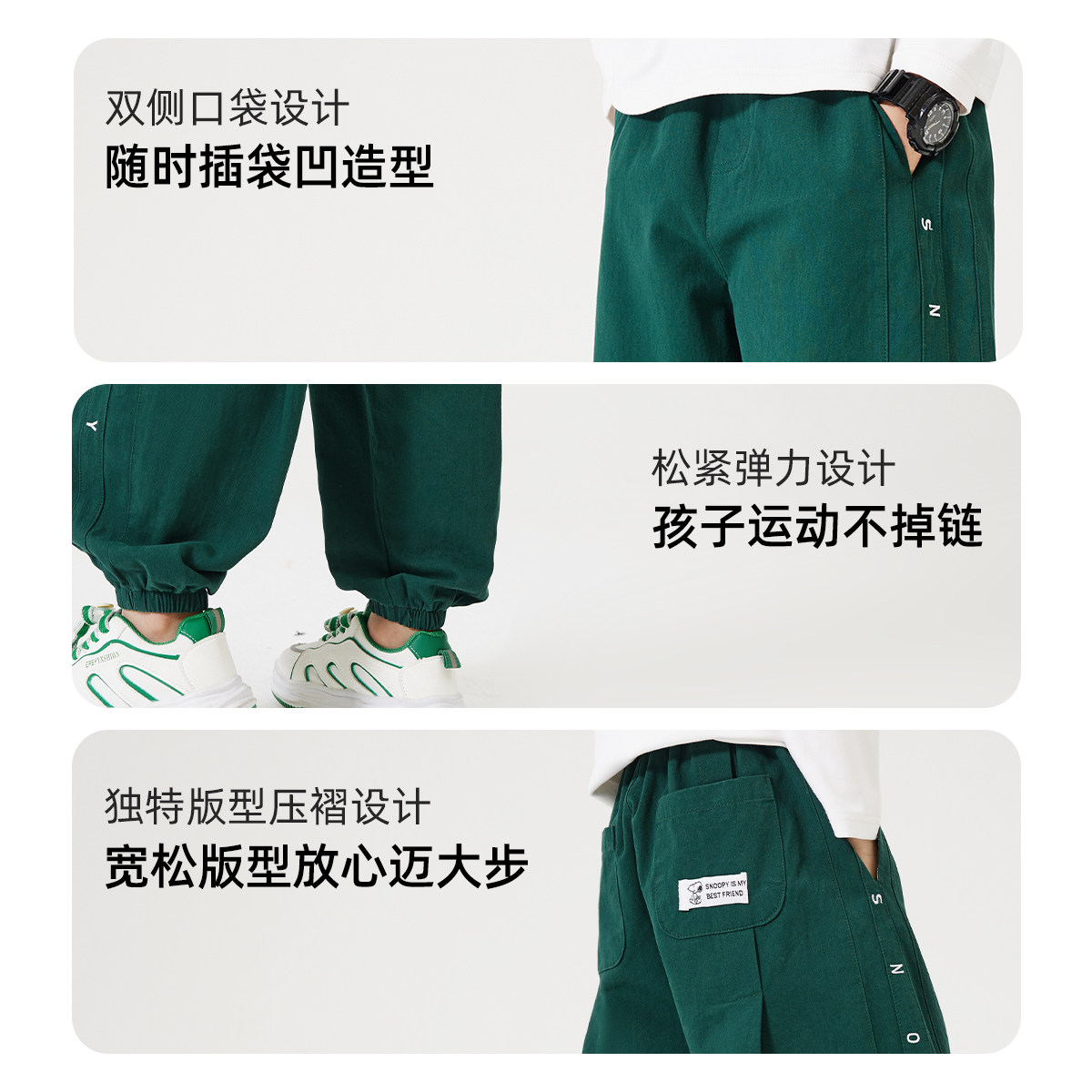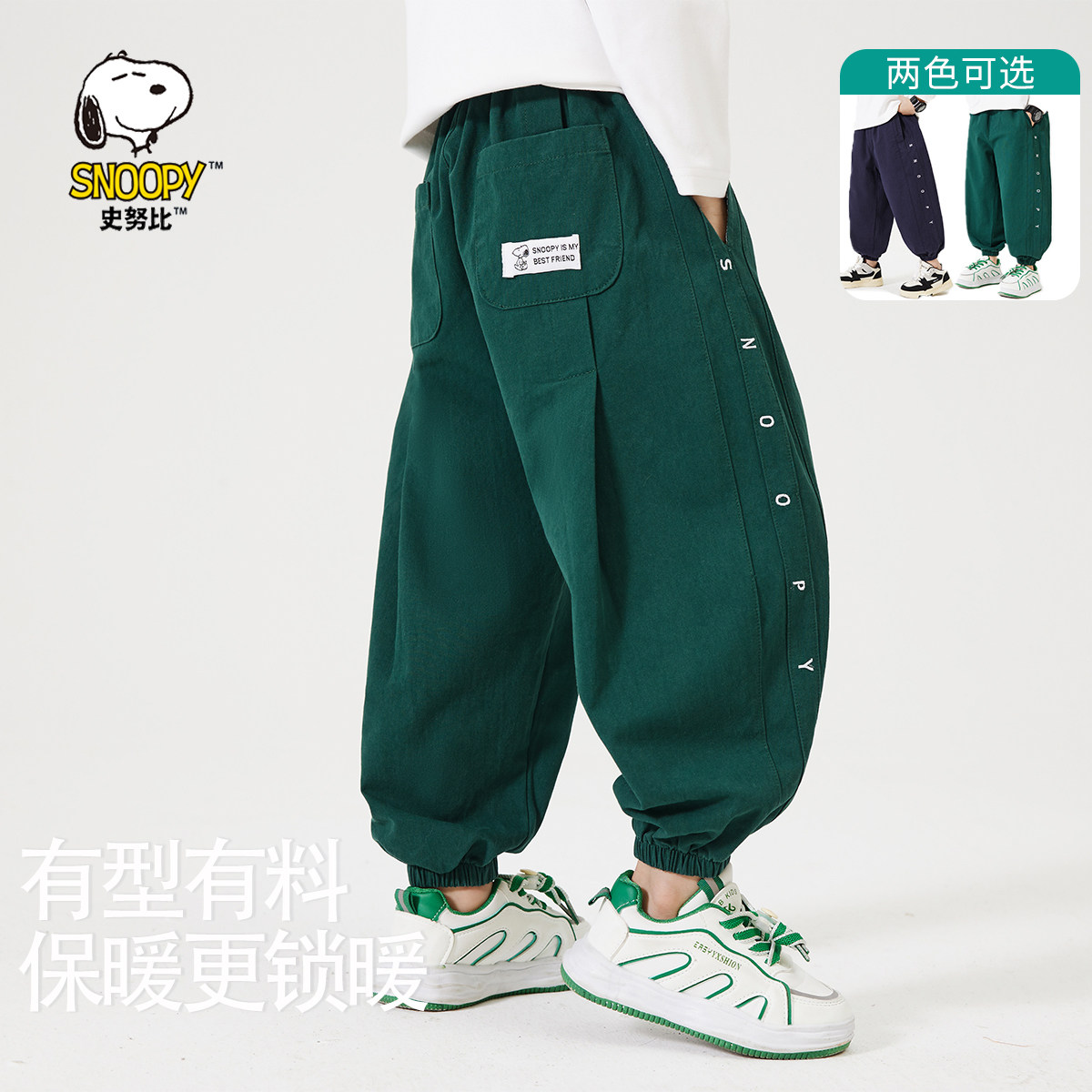 史努比男童加绒裤子2025春秋新款中小童宽松束脚裤洋气童装休闲裤