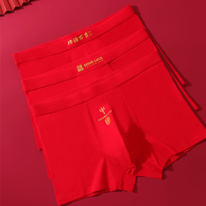 精梳棉抑菌平角裤男士纯棉内裤男大码四角裤结婚红色平角短裤头男