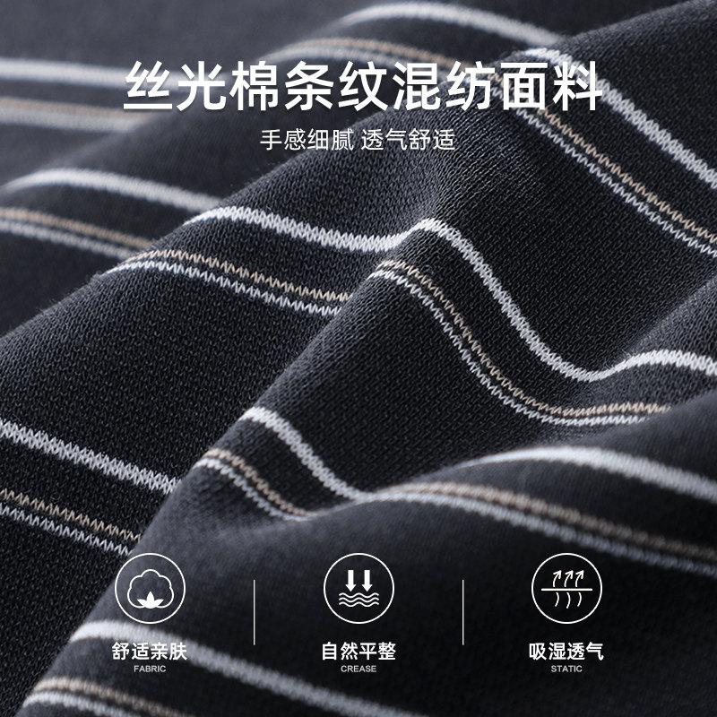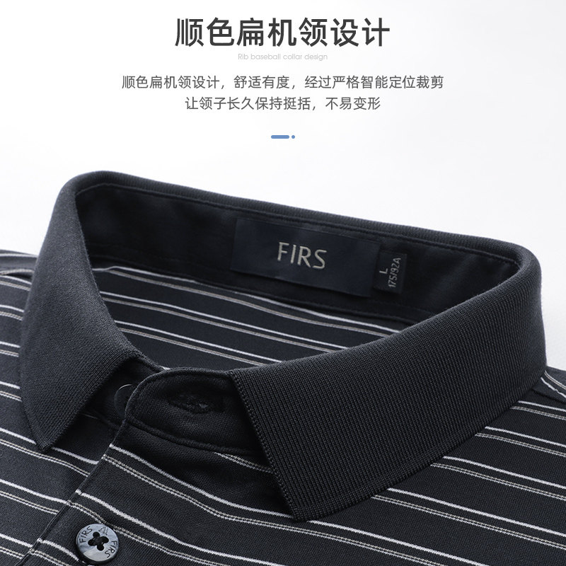 丝光棉条纹透气翻领休闲夏季短袖