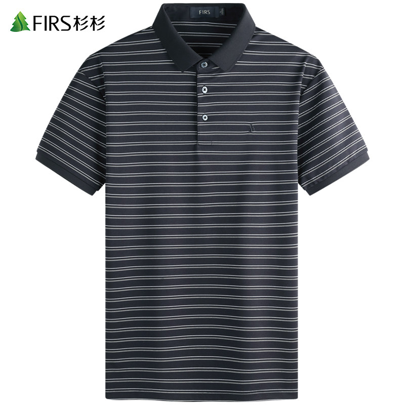 【丝光棉】杉杉短袖T恤男士2025夏季新款条纹透气休闲翻领POLO衫