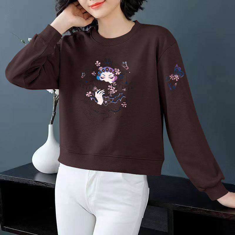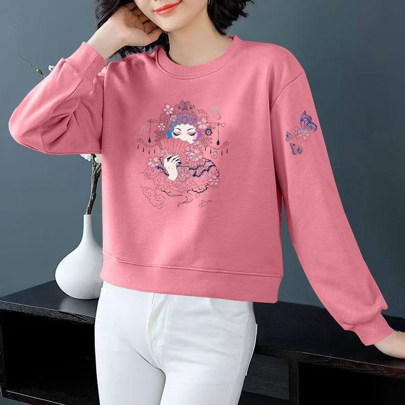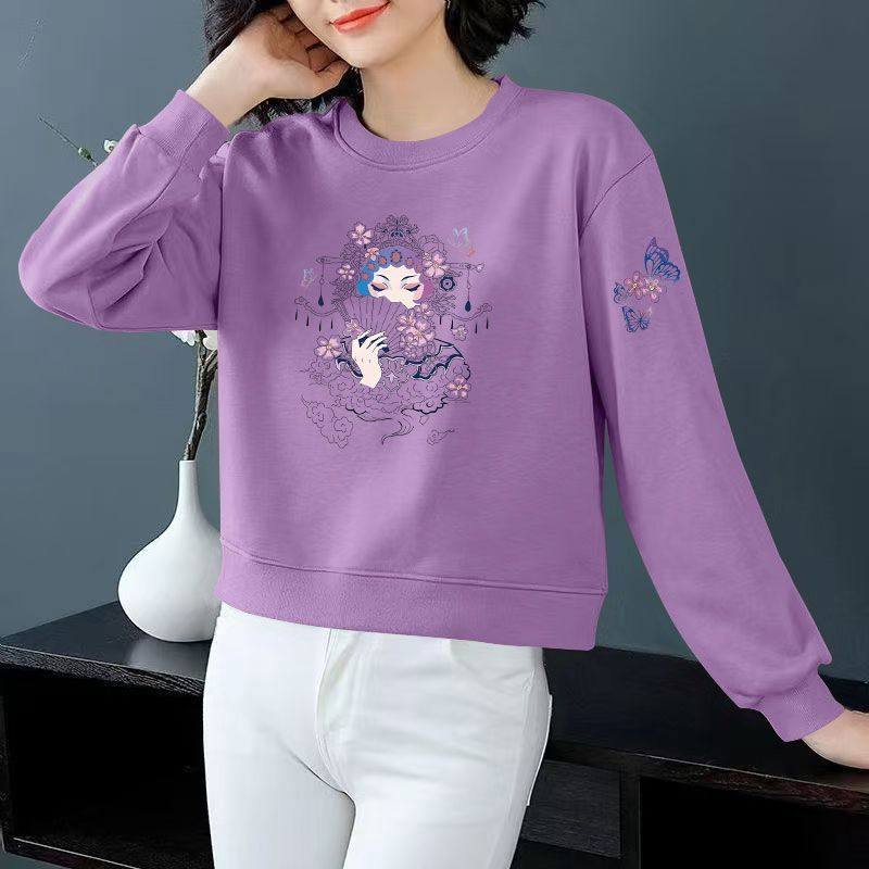 纯棉圆领长袖卫衣女秋冬新款大码韩版休闲印花宽松遮肉上衣