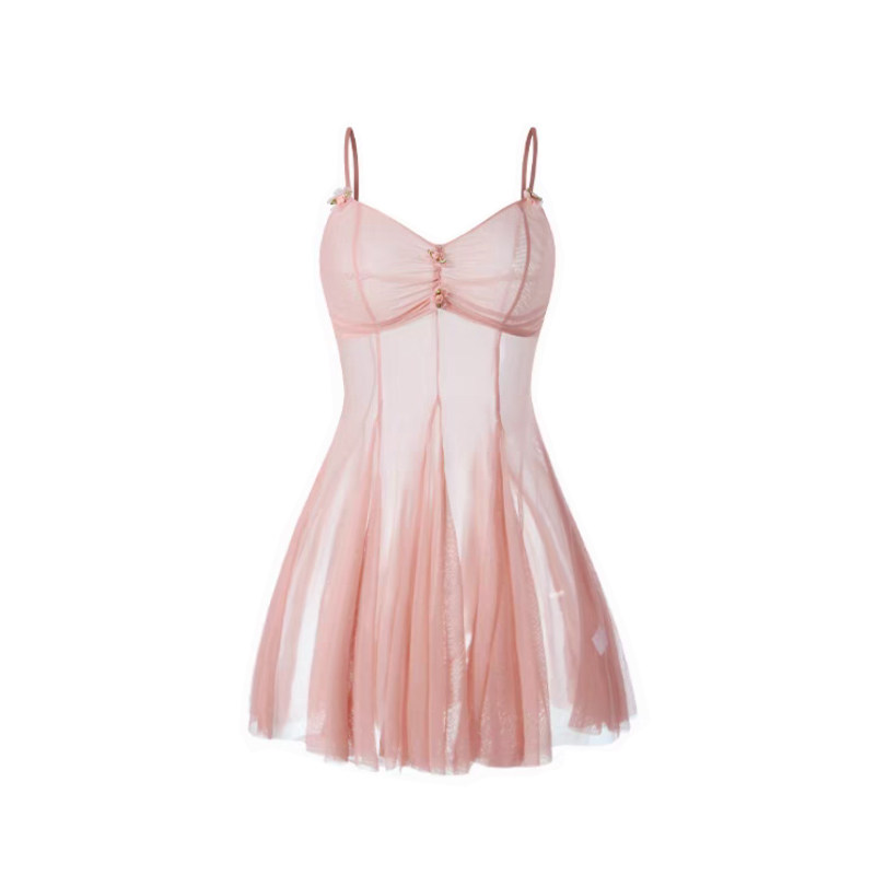 2025夏季新款 纯欲性感钢托聚拢透视睡衣褶皱紧身包臀诱惑睡裙