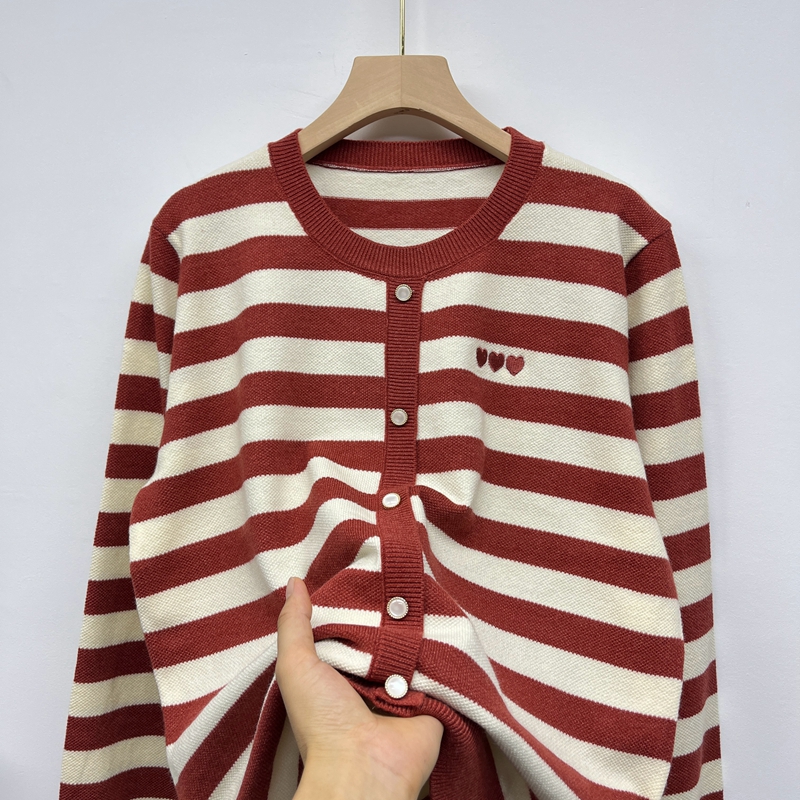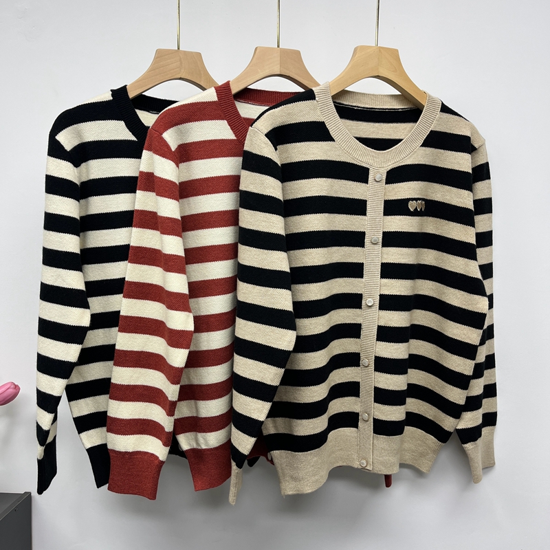 妈妈装春秋新款圆领套头上衣中年妇女秋装针织衫条纹薄款毛衣女装