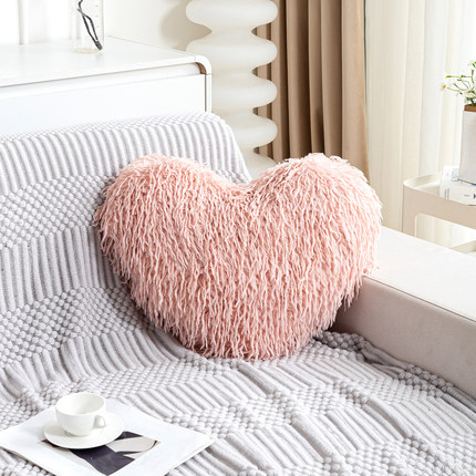 羽毛爱心形毛绒抱枕沙发客厅靠垫粉色床头靠枕轻奢高级感女生礼物