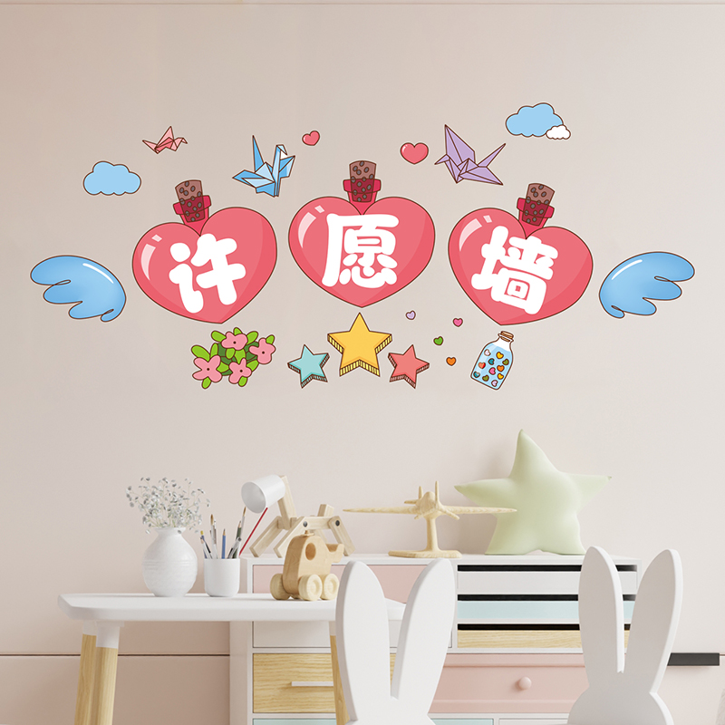 幼儿园装饰许愿背景墙心愿墙贴画创意小学教室布置文化墙贴纸自粘