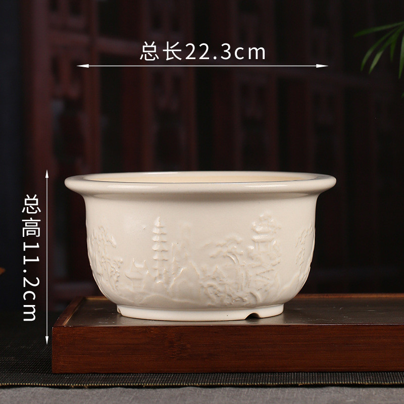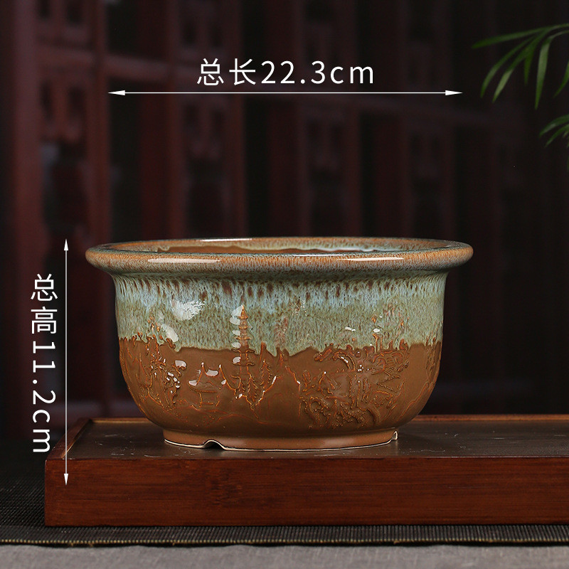 批发釉水紫砂花盆宜兴创意仿古圆形桌面创意植物装饰绿萝多肉yz13