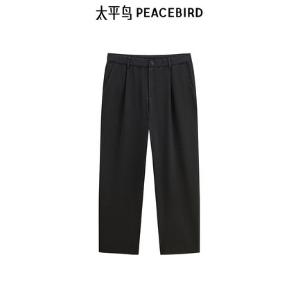 太平鸟男装锤形商务西装裤秋季质感黑色休闲裤时尚长裤