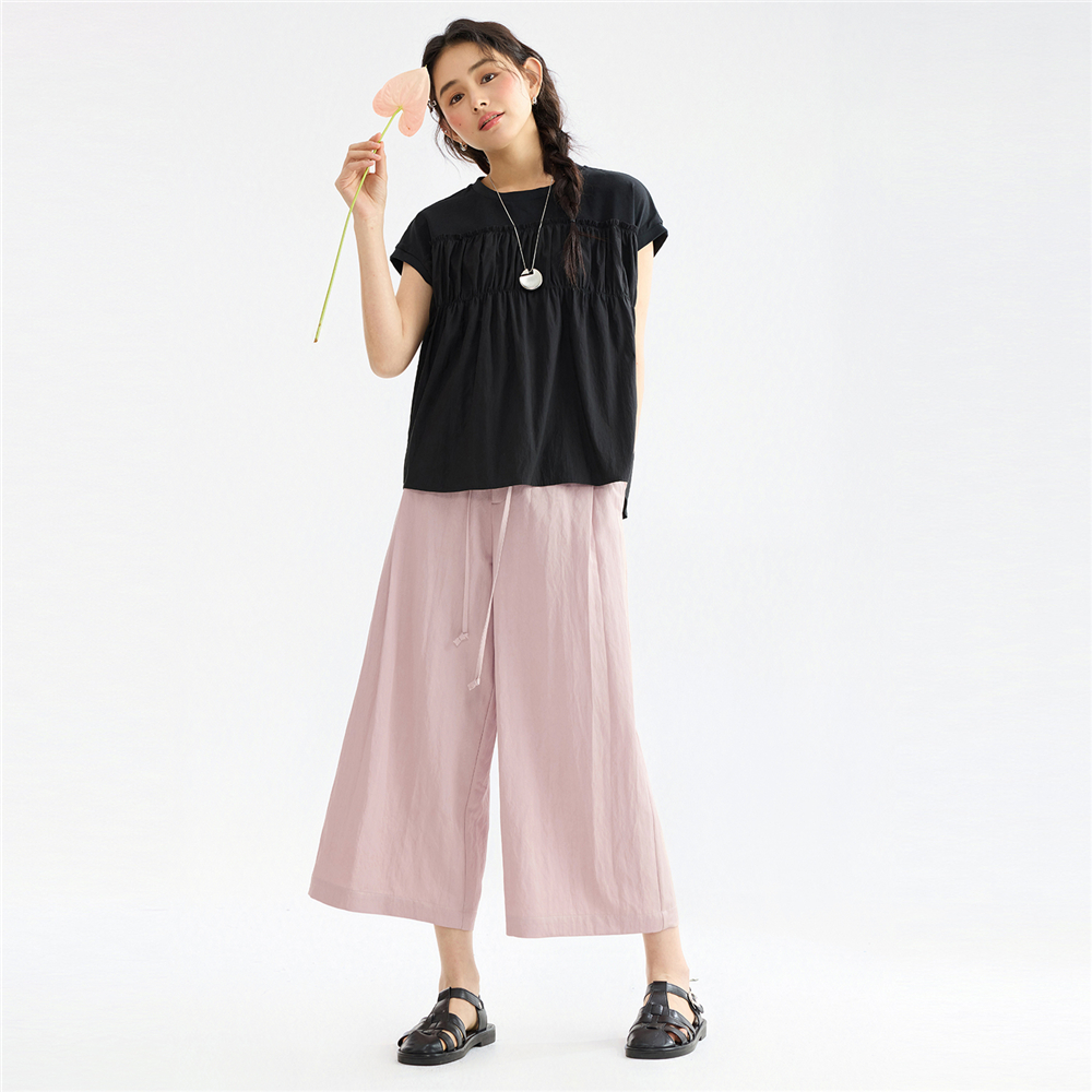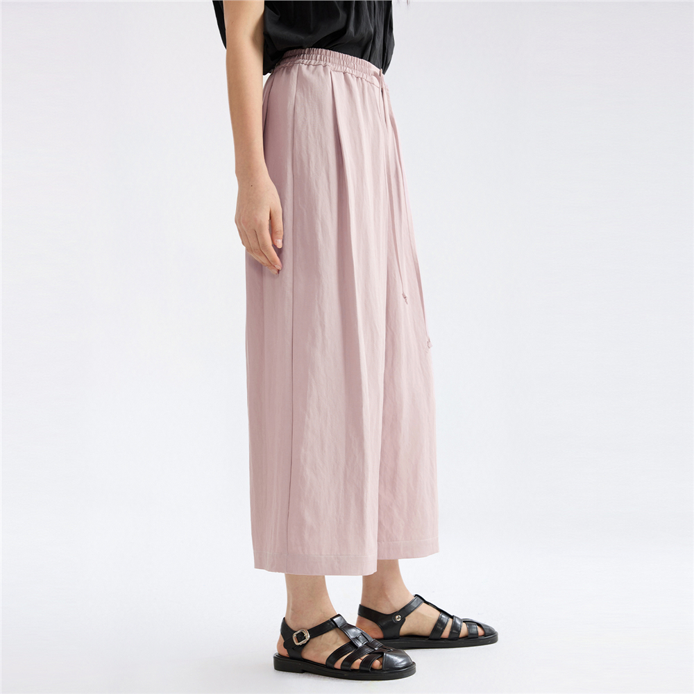 佐丹奴九分裤女装抽绳半松紧腰梭织薄阔腿八分裤 18425606