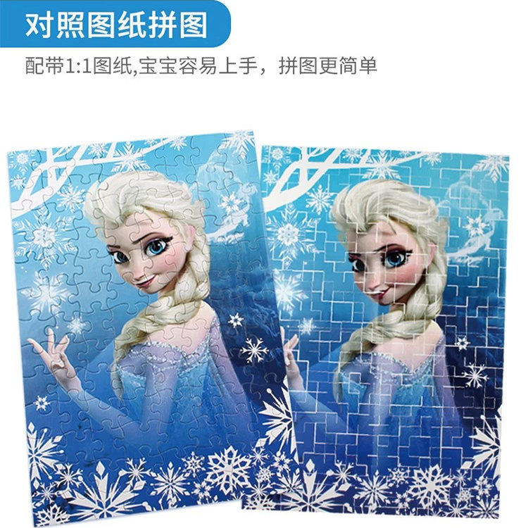 迪士尼冰雪200块拼图儿童女孩5-6-8岁艾莎公主100片平图益智玩具