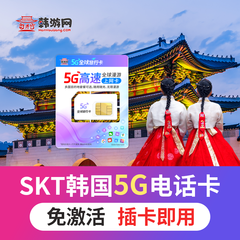 韩国电话卡可选3/4/5/7天无限高速5G/4G济州岛旅游手机上网流量卡