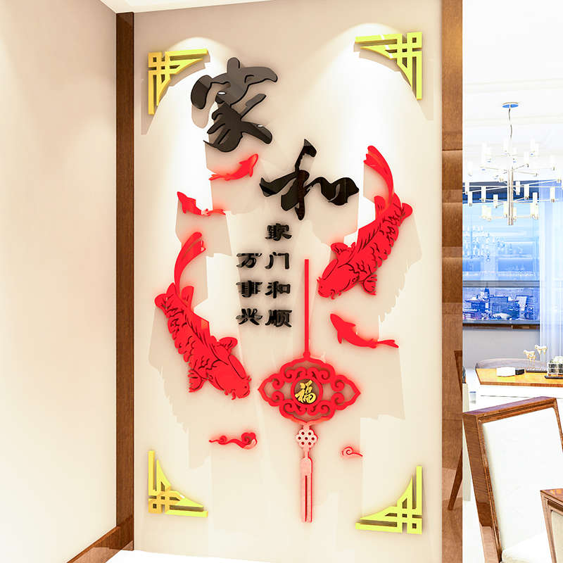 中式亚克力3d立体墙贴画餐客厅玄关卧室新年房间背景墙自粘装饰品