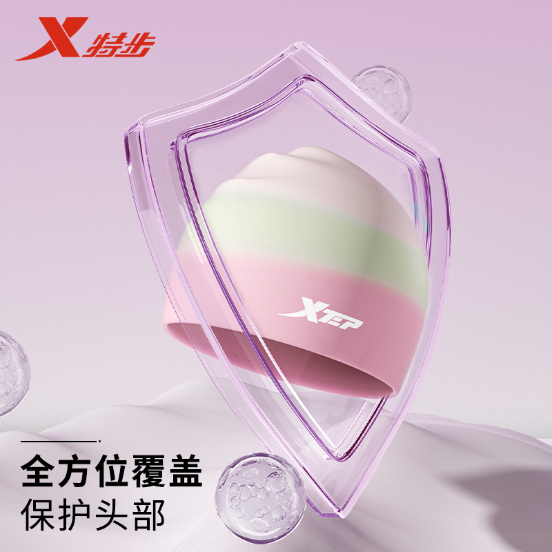特步泳帽女款成人防水不勒头长发加大高颜值大头围儿童硅胶游泳帽