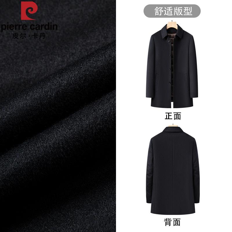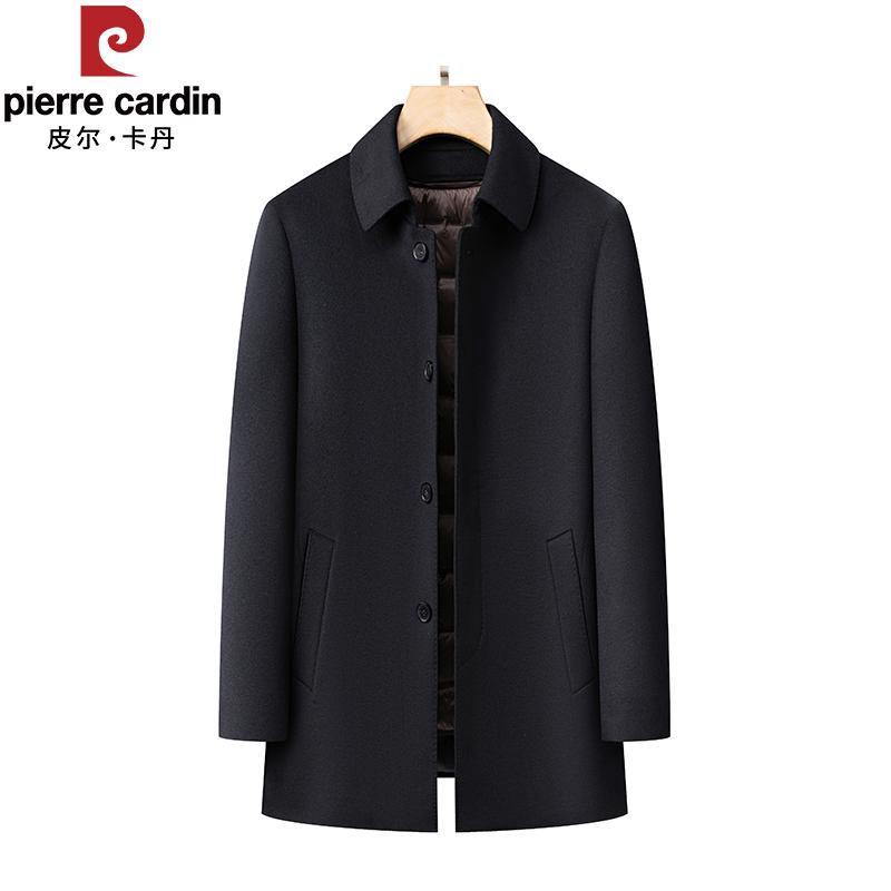 皮尔卡丹高端纯羊绒大衣男2024冬季鹅绒内胆爸爸装中长款呢子外套