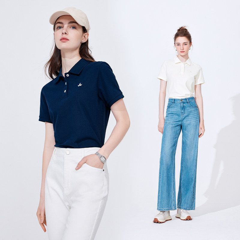 Navigare意大利小帆船基础款短袖polo衫女2025夏季修身翻领T恤