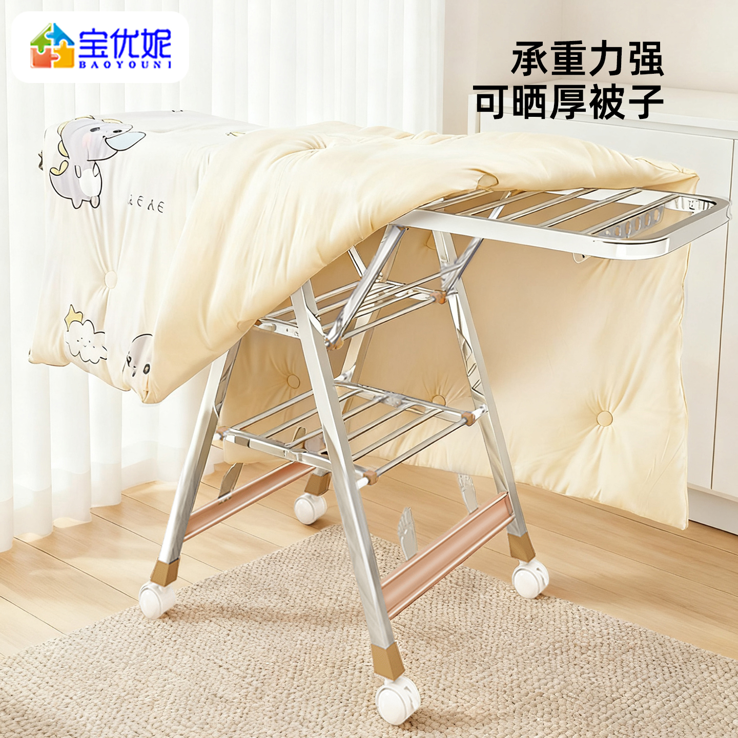 宝优妮不锈钢翼型落地户外折叠晾衣架室内家用婴儿阳台晒被子神器