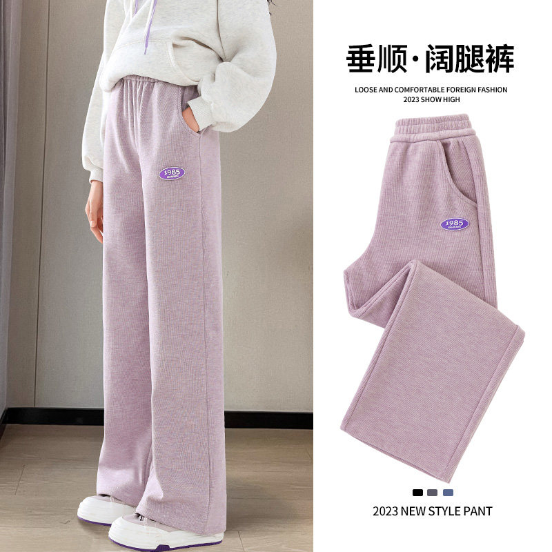 女童加绒裤子2025新款秋冬款休闲儿童阔腿裤中大童加厚直筒运动裤