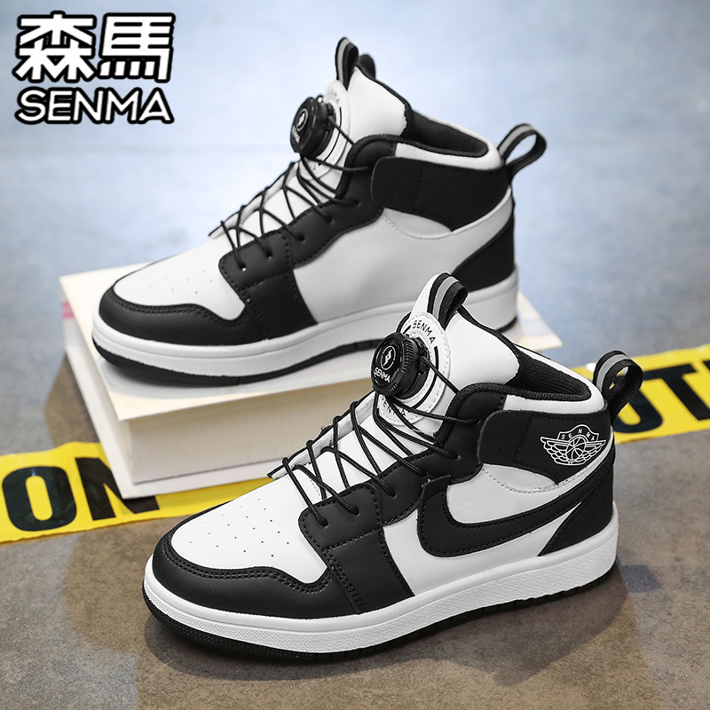 森马男童鞋子2025新款秋季儿童运动鞋中大童高帮熊猫板鞋男孩童鞋