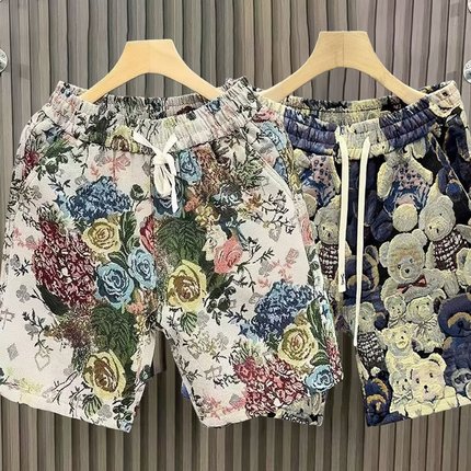 花短裤男夏季沙滩裤薄款五分潮流宽松大裤衩冰丝运动速干休闲裤子