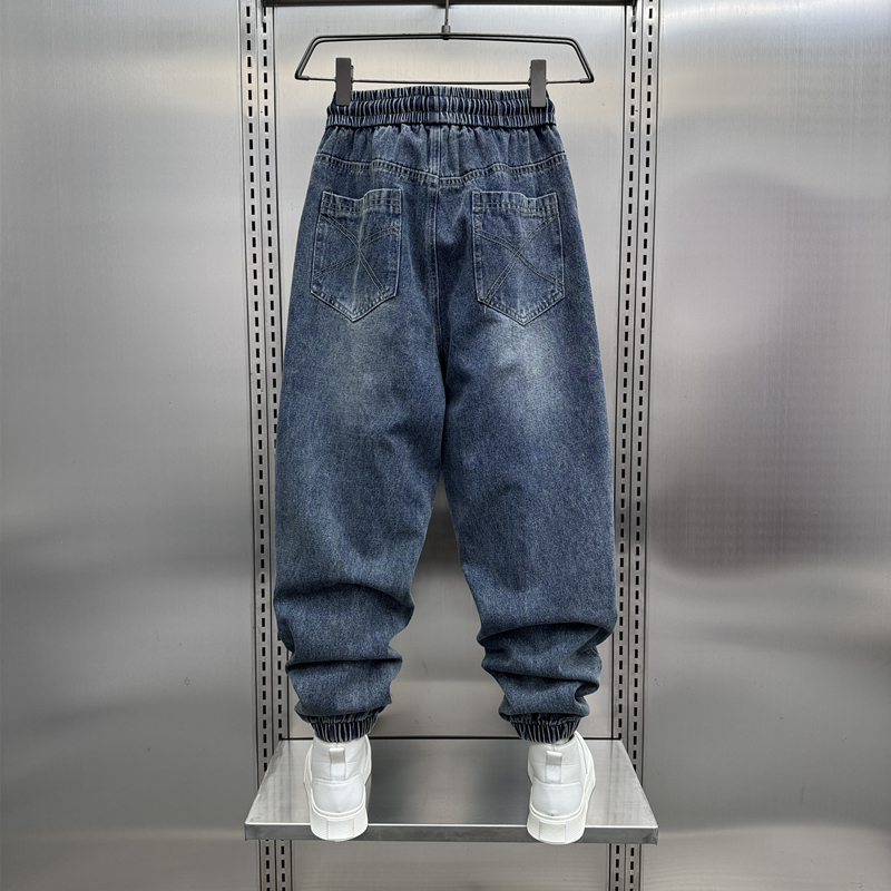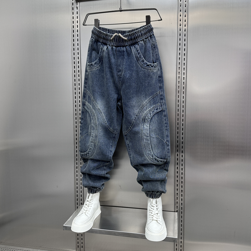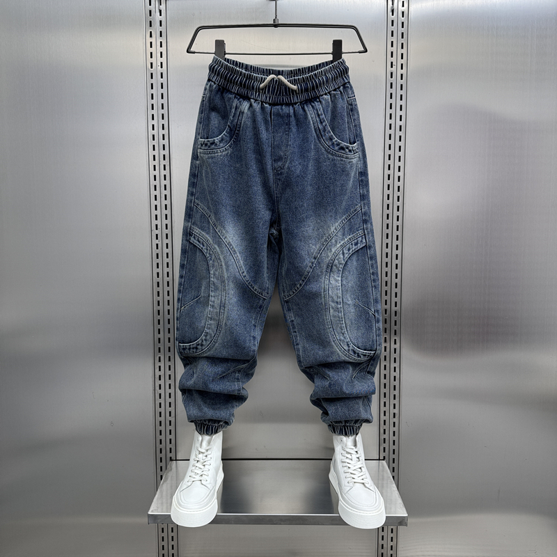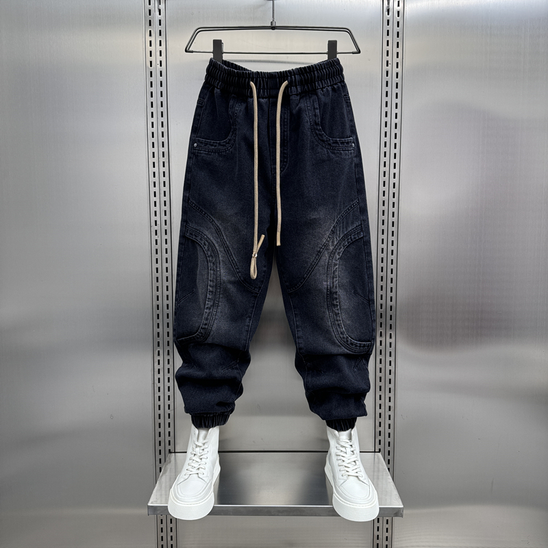 男裤2024春秋新款水洗拼接牛仔裤