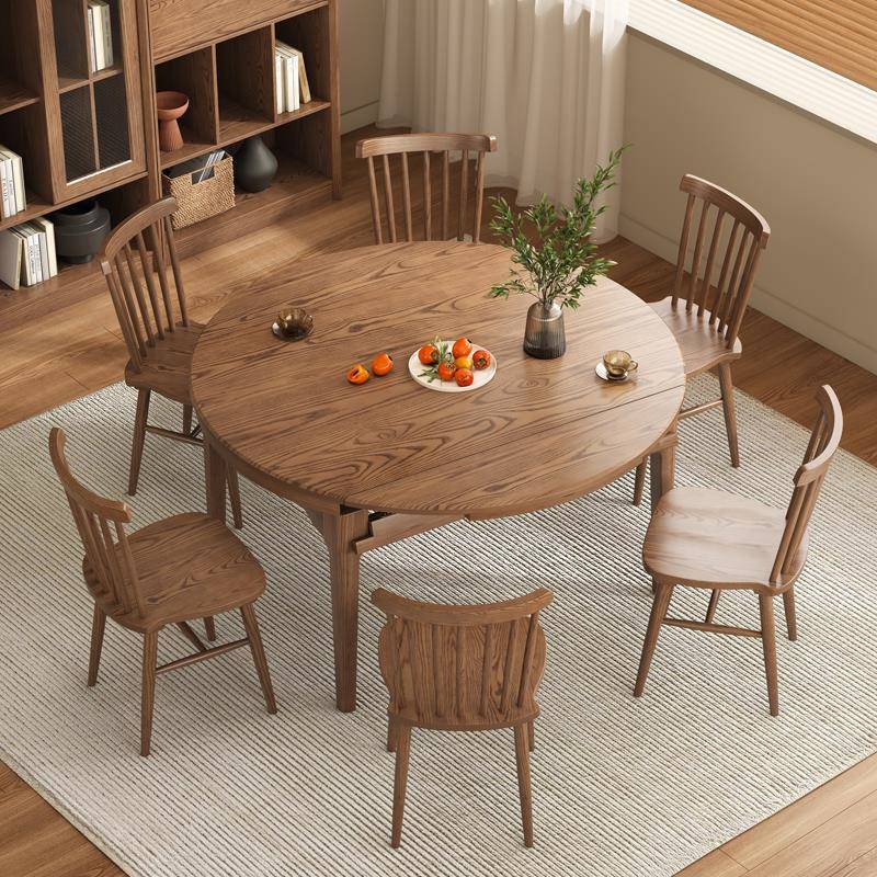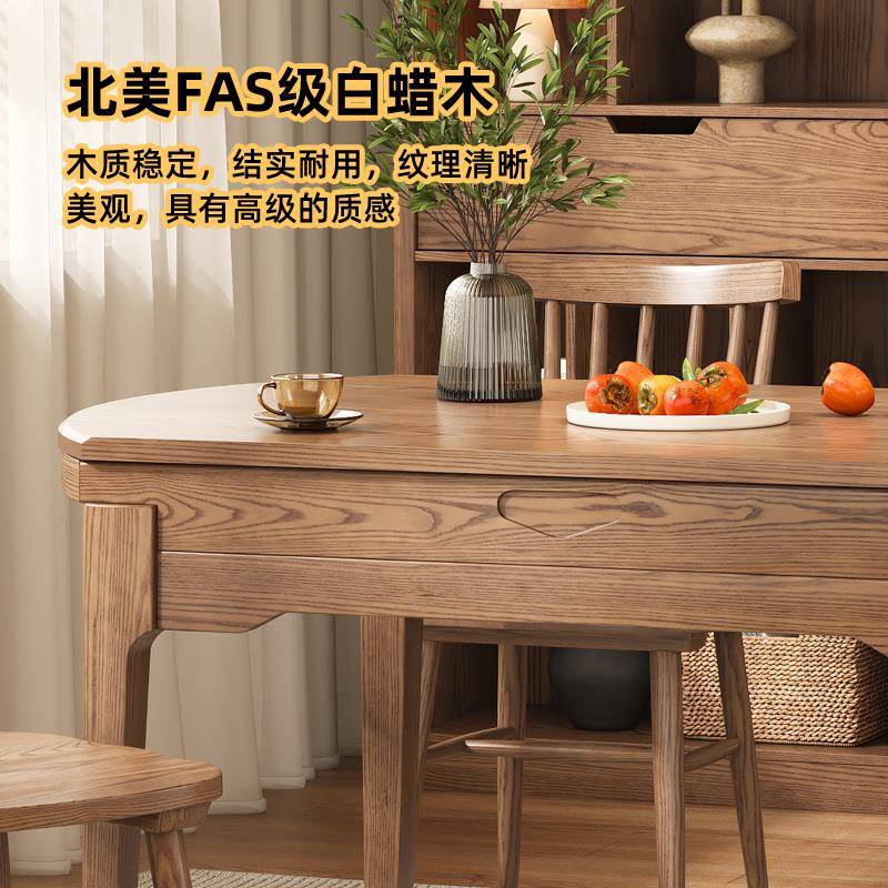 现代简约实木餐桌可伸缩饭台饭桌折叠圆形餐桌椅组合白蜡木圆餐桌