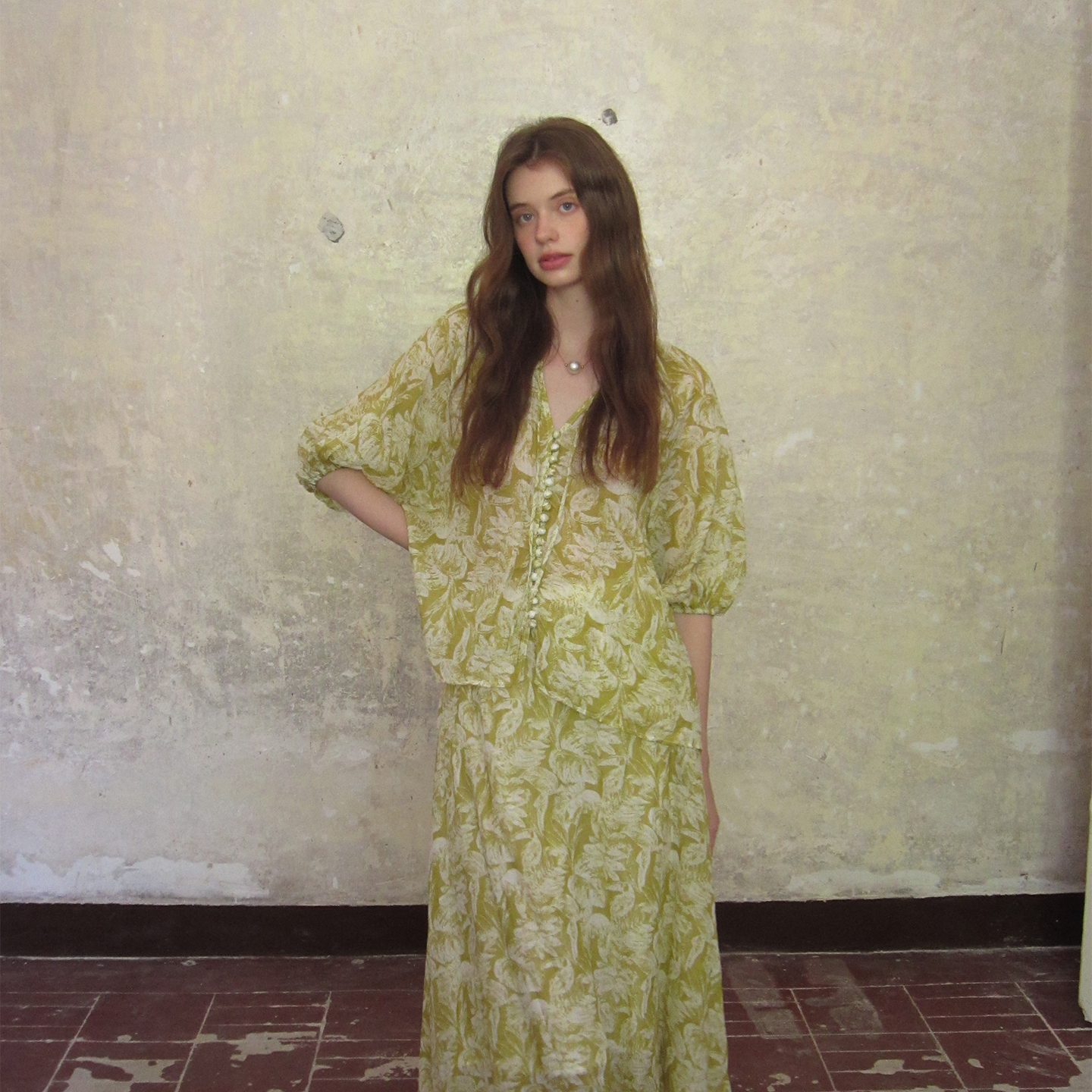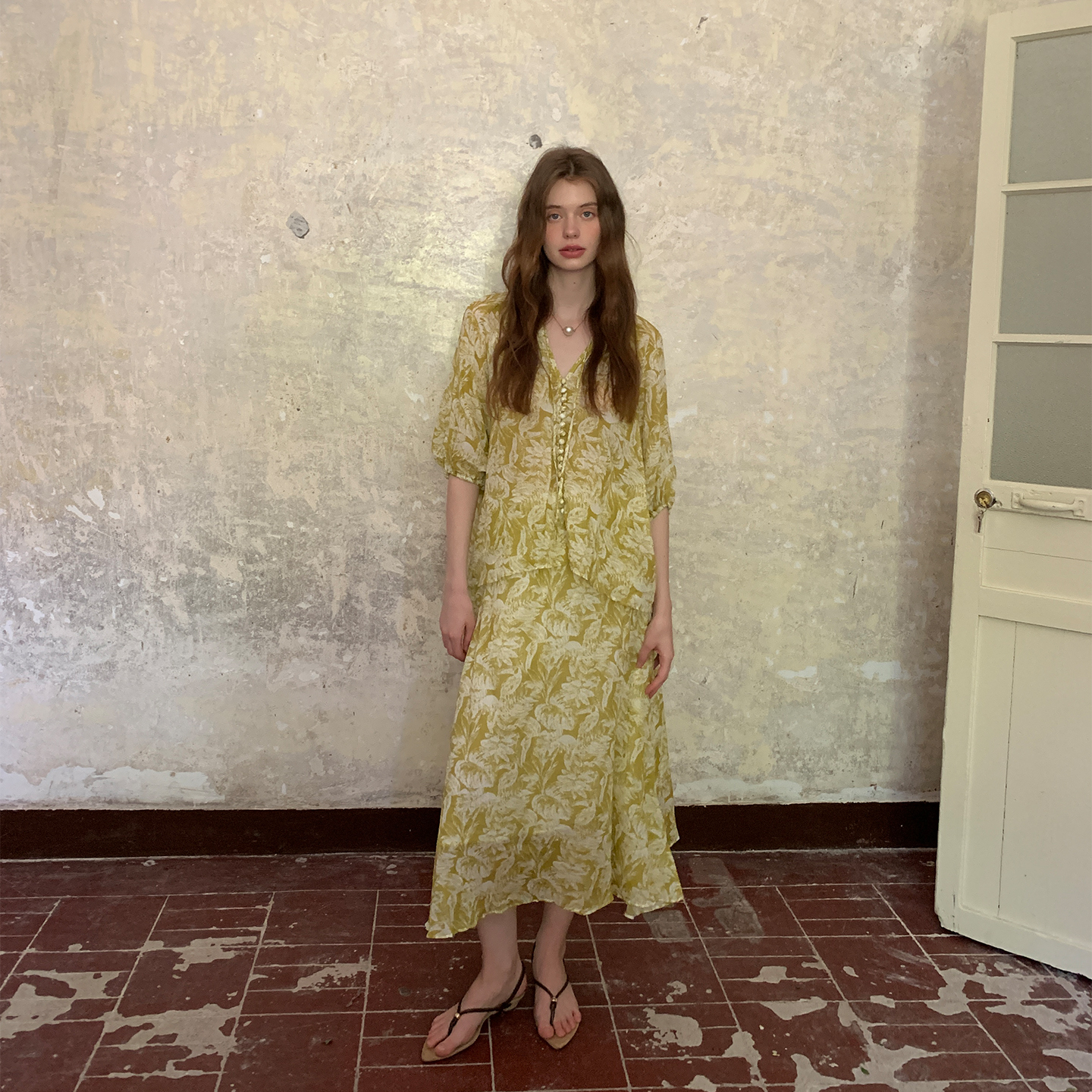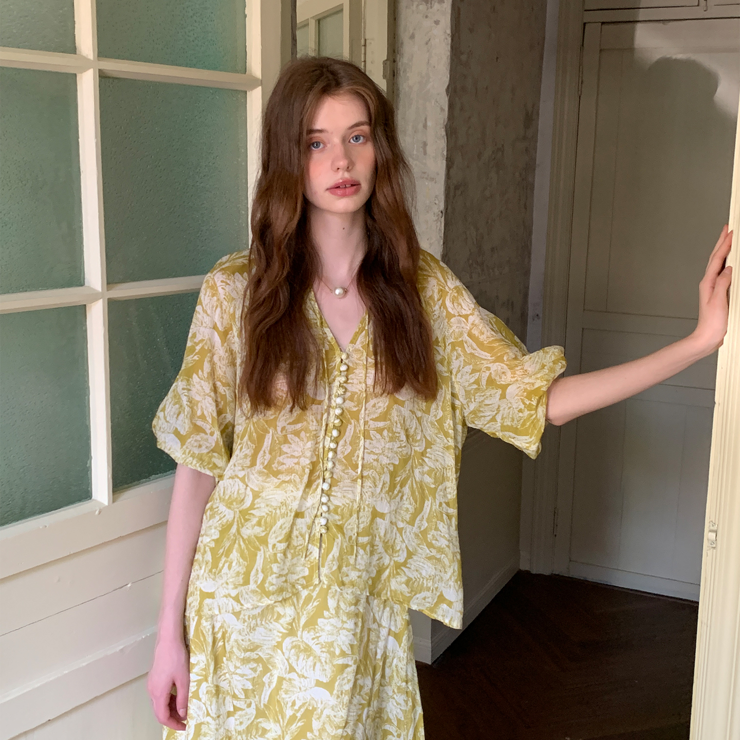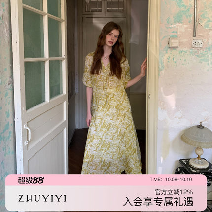 ZHUYIYI 100苎麻印花短袖衬衫+半裙套装裙女夏两件套原创设计