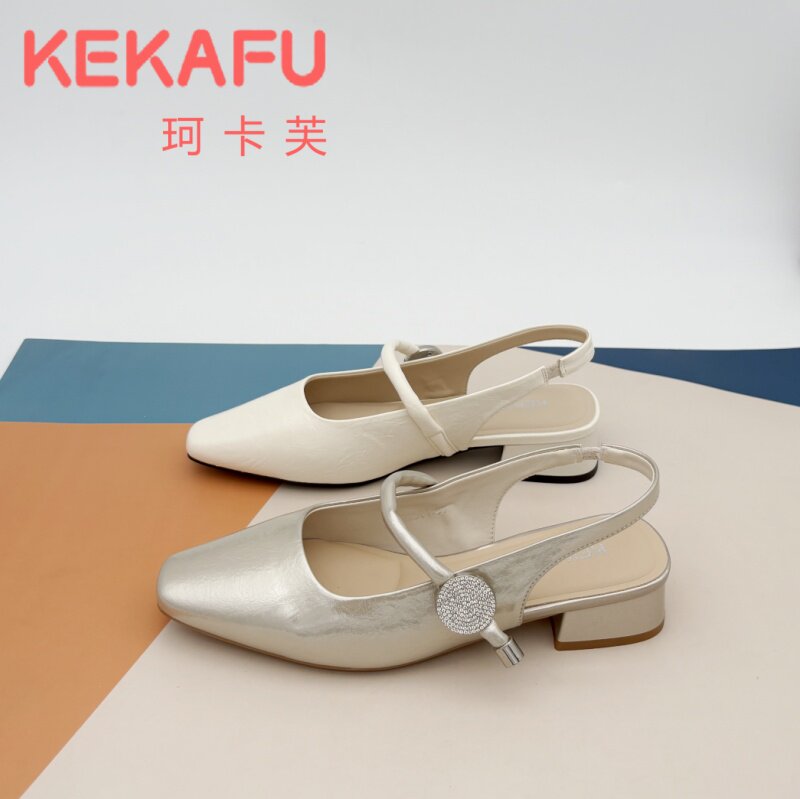 珂卡芙法式高跟凉鞋女2025夏新款外穿后空单鞋小香风高跟鞋子女