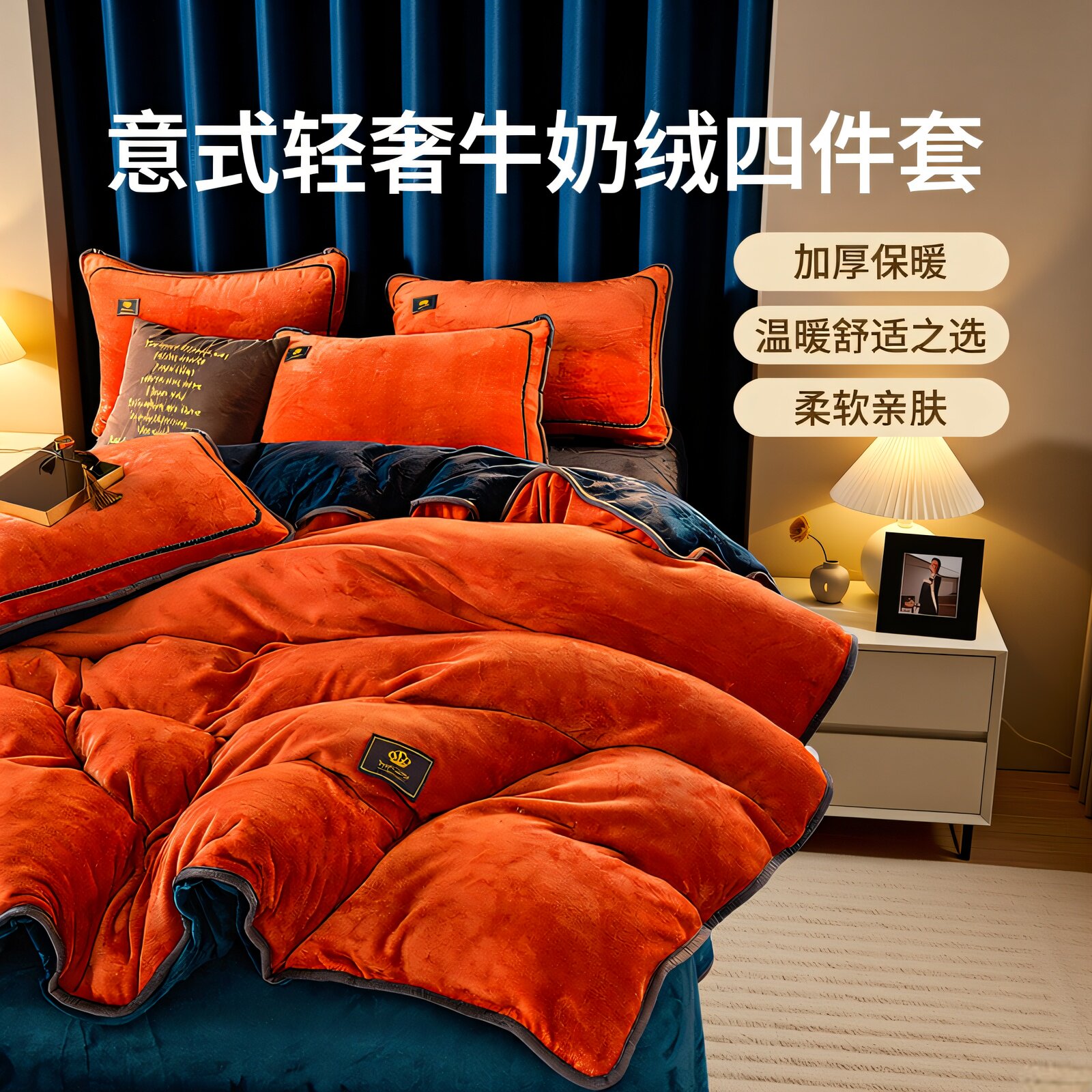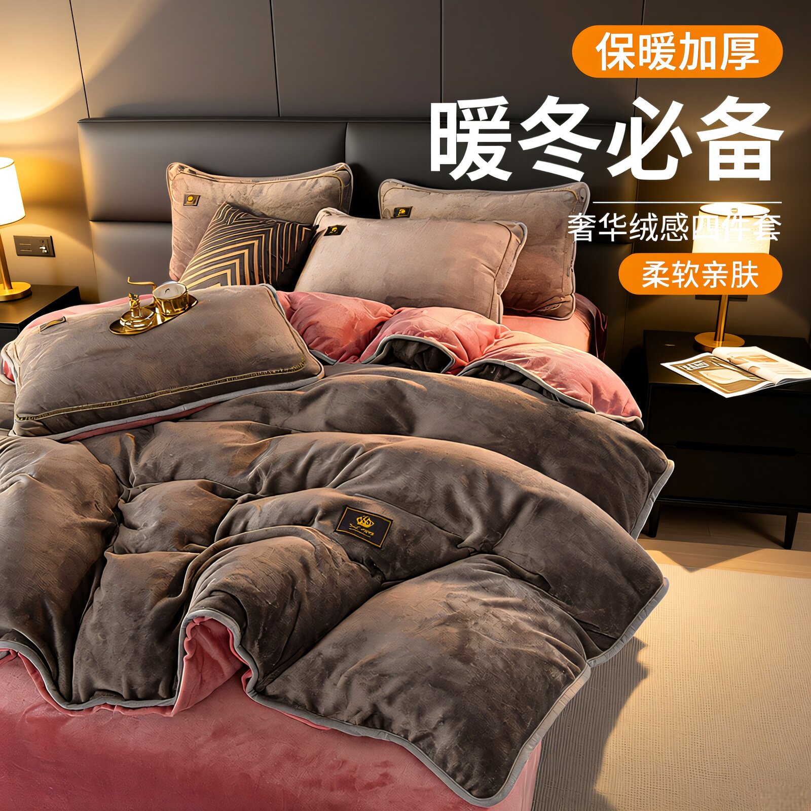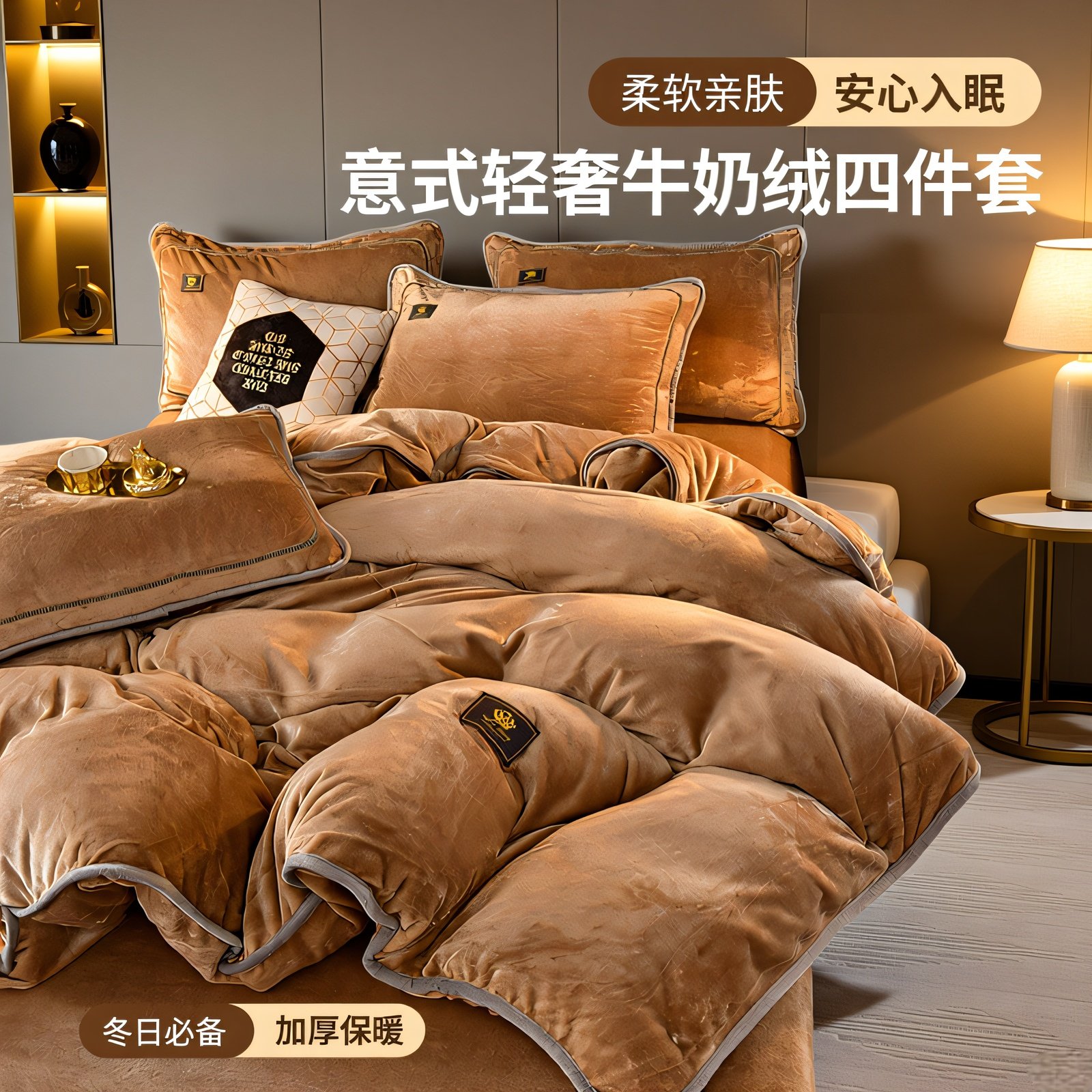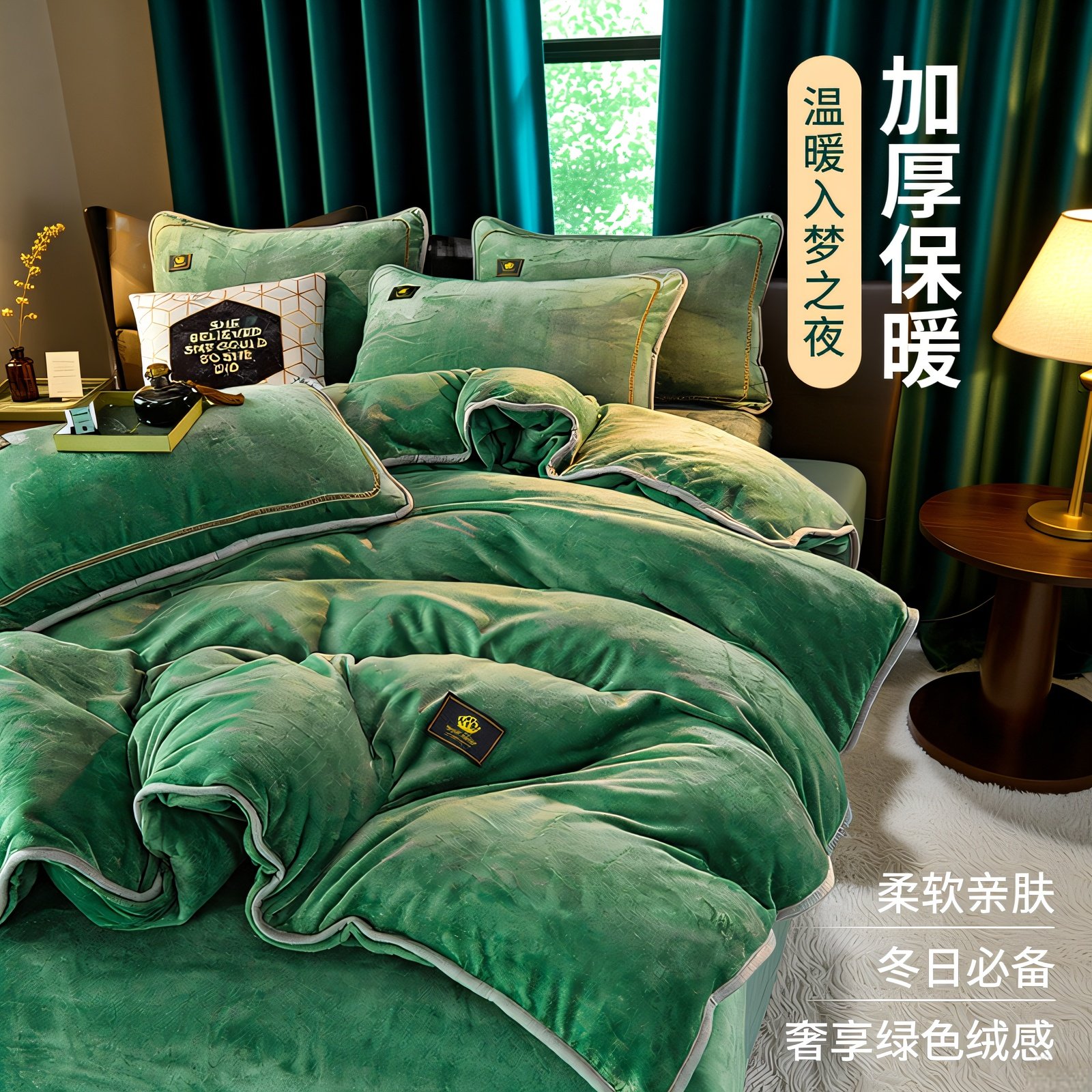 欧式轻奢牛奶绒四件套冬季防静电加绒珊瑚绒被套床上用品床单床笠