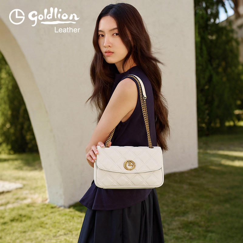 金利来新款真皮时尚菱格小香风单肩腋下包包小众设计斜挎链条包女