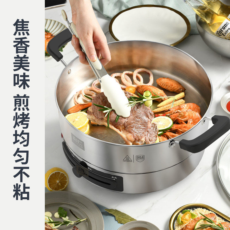 利仁电煎锅不锈钢电饼铛家用新款加深加大多功能烙饼锅超深锅官方