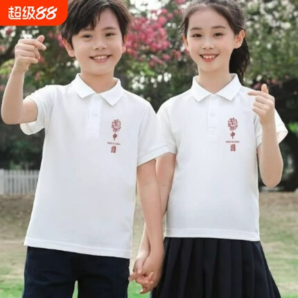 儿童纯棉白色POLO衫2025新款六一表演出服夏季男女学生上衣团体服