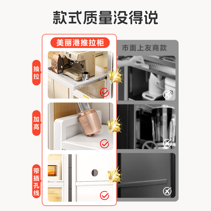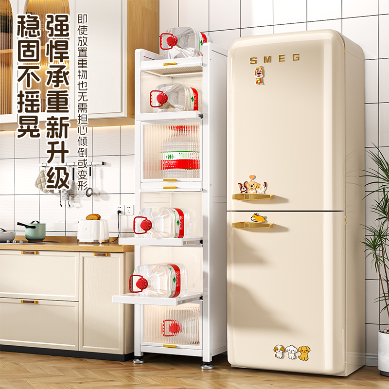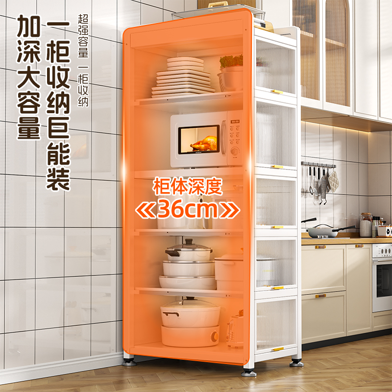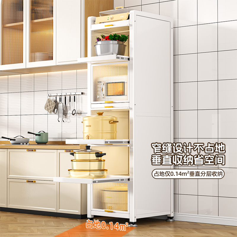 厨房夹缝多功能微波炉置物架多层落地抽拉碗碟锅具窄缝收纳储物柜