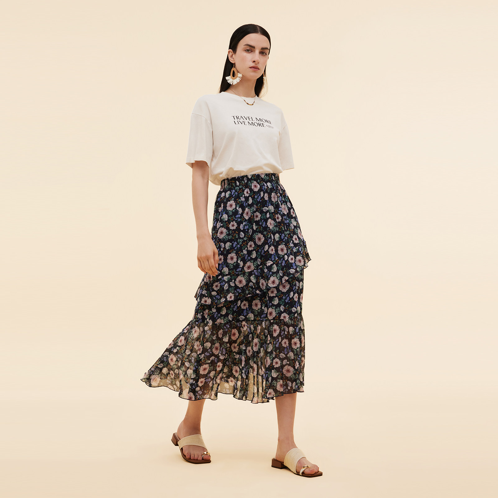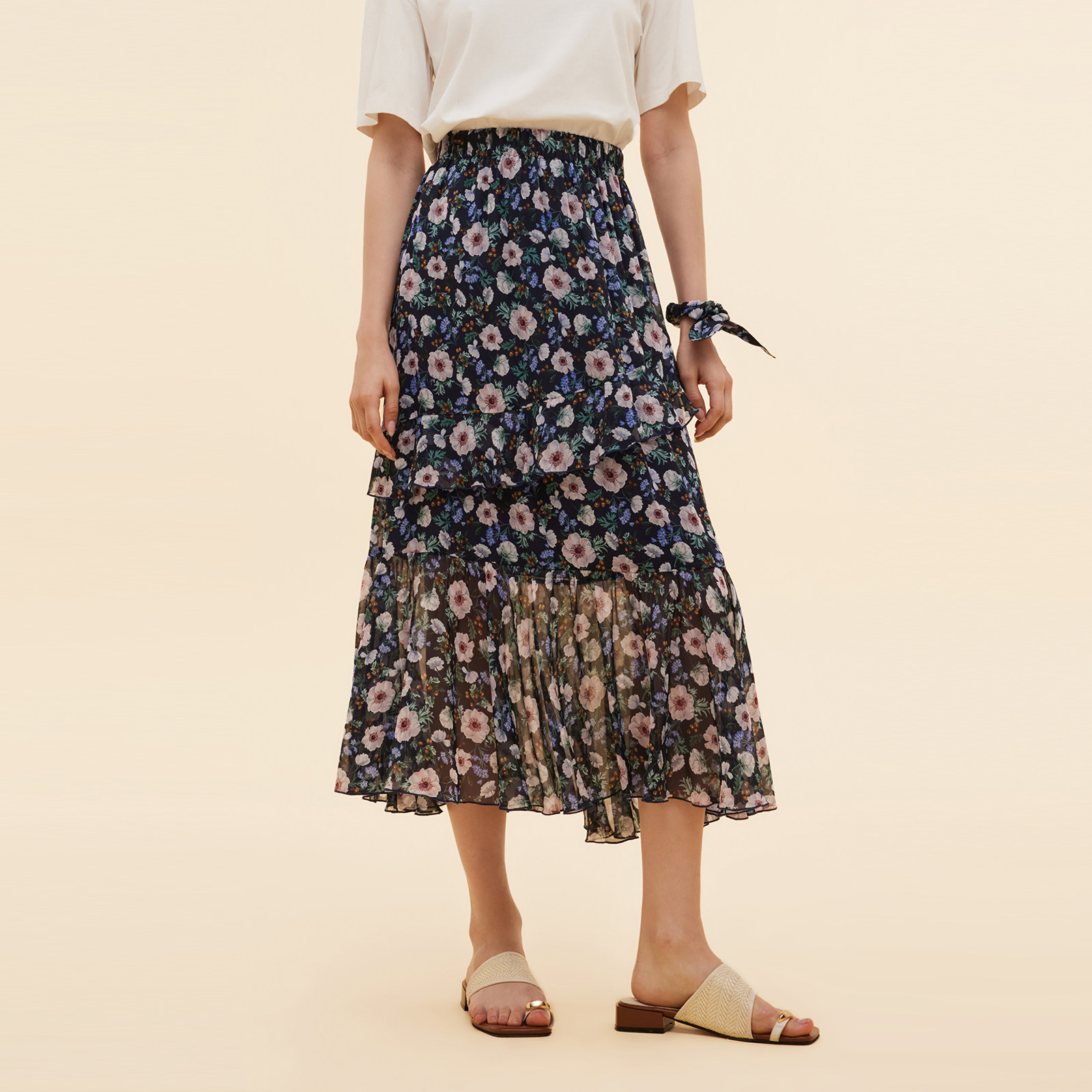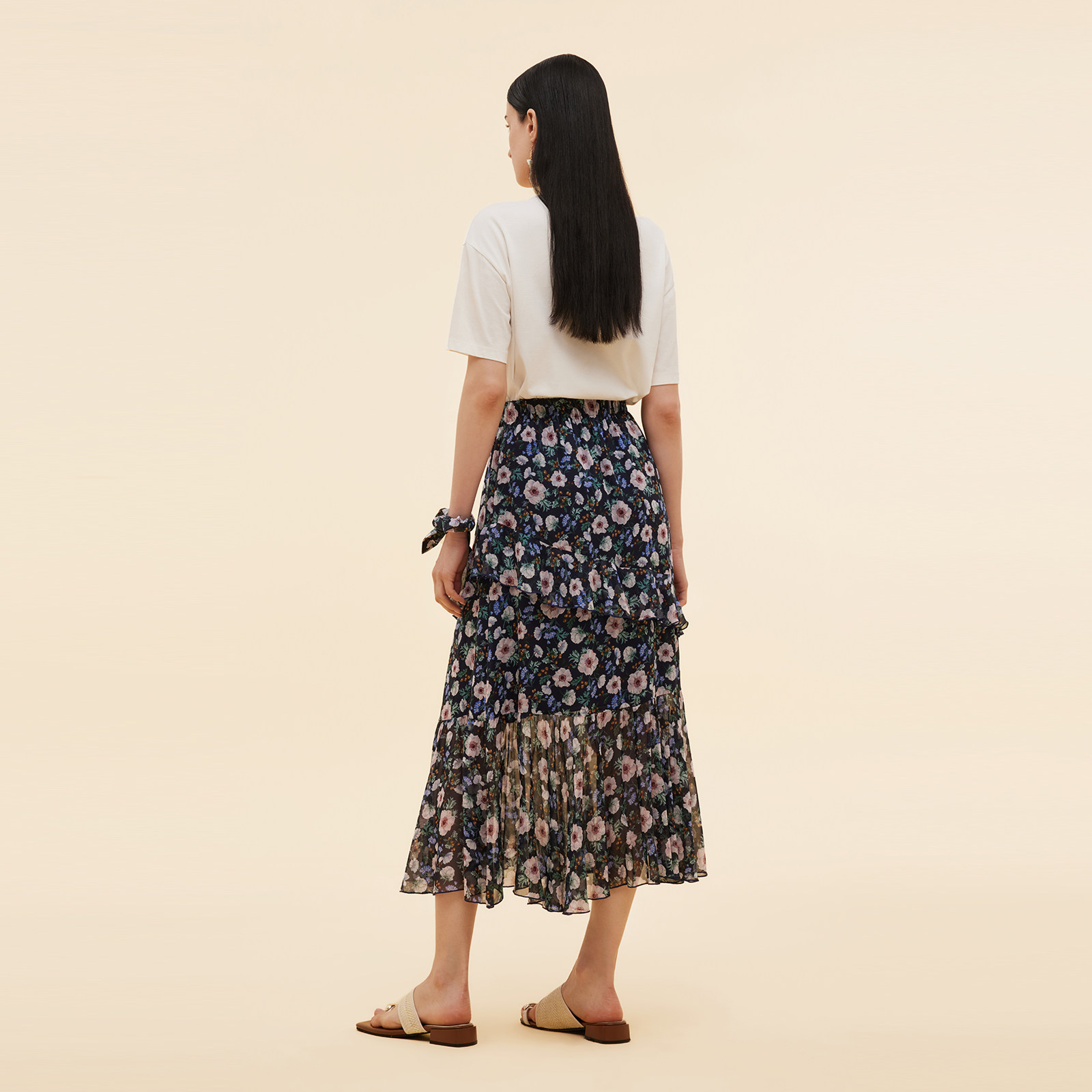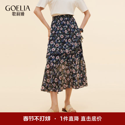 直降3折|歌莉娅真丝半身裙女夏季桑蚕丝高腰不规则裙子