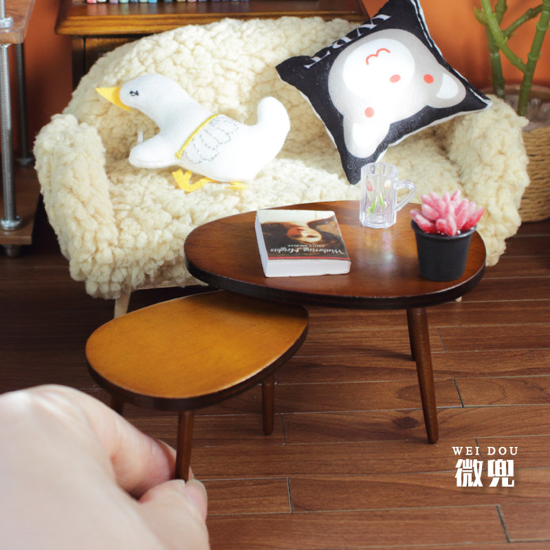 微缩茶几12分迷你家具边几模型ob11三角桌娃娃屋茶台拍摄场景配件