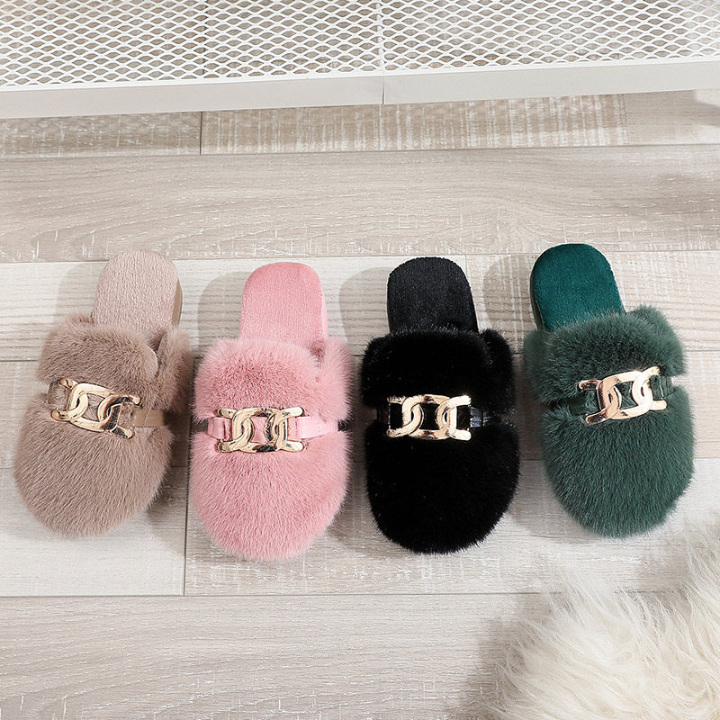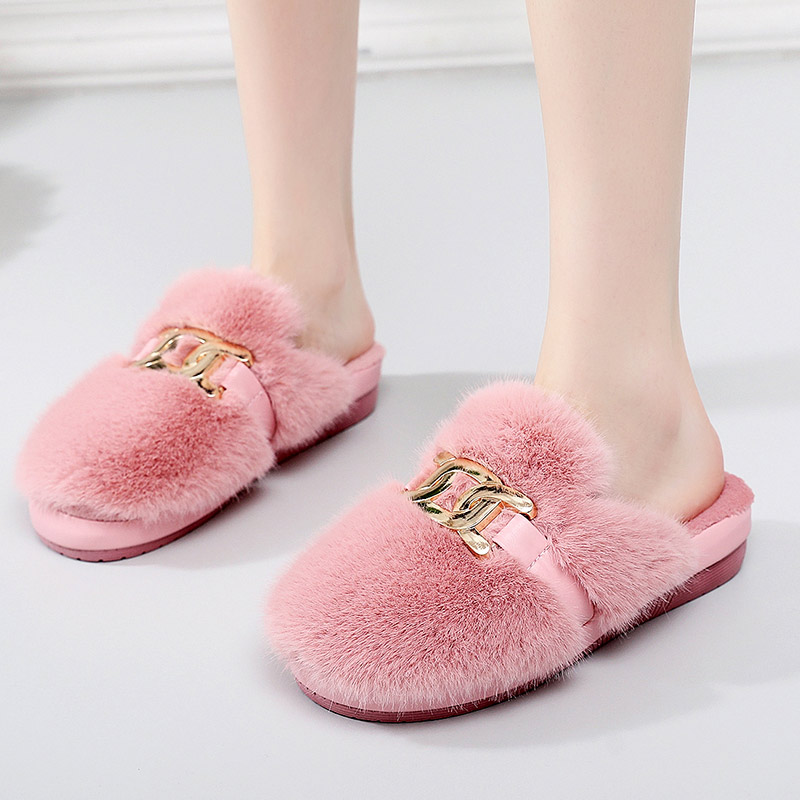 时尚秋冬季坡跟棉拖鞋女室内软底加绒防滑厚底保暖甜美优雅居家鞋