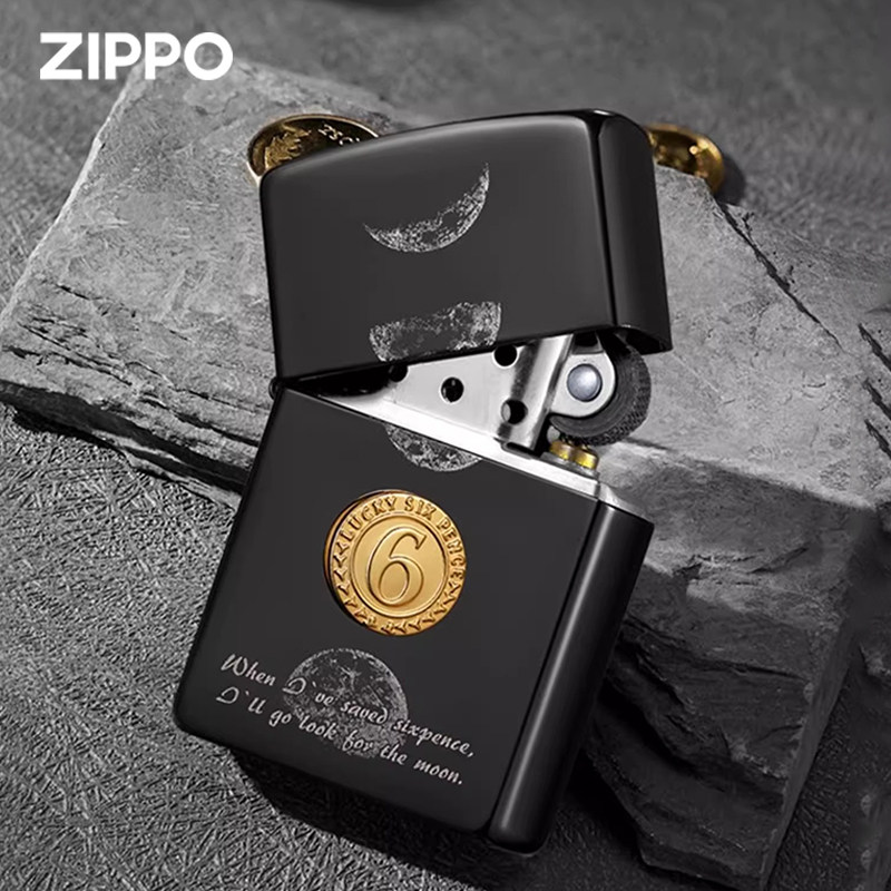 ZIPPO打火机官方正品 煤油防风黑冰月亮与六便士男士朋友生日礼物