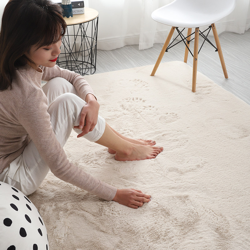 地毯卧室仿兔毛加厚客厅茶几毯纯色简约长绒毛房间床边毯飘窗地毯