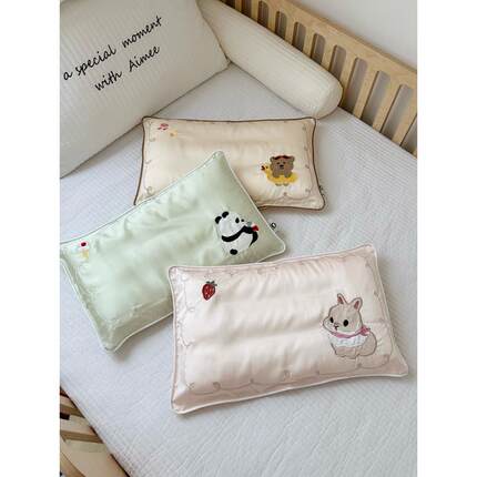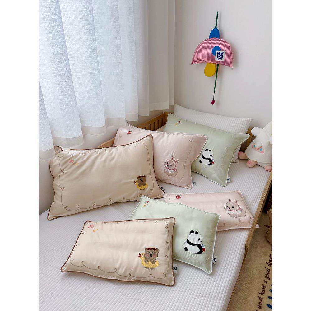 夏季兰精天丝儿童枕套 绣花可爱宝宝枕头套枕皮30*50单人枕套单祇