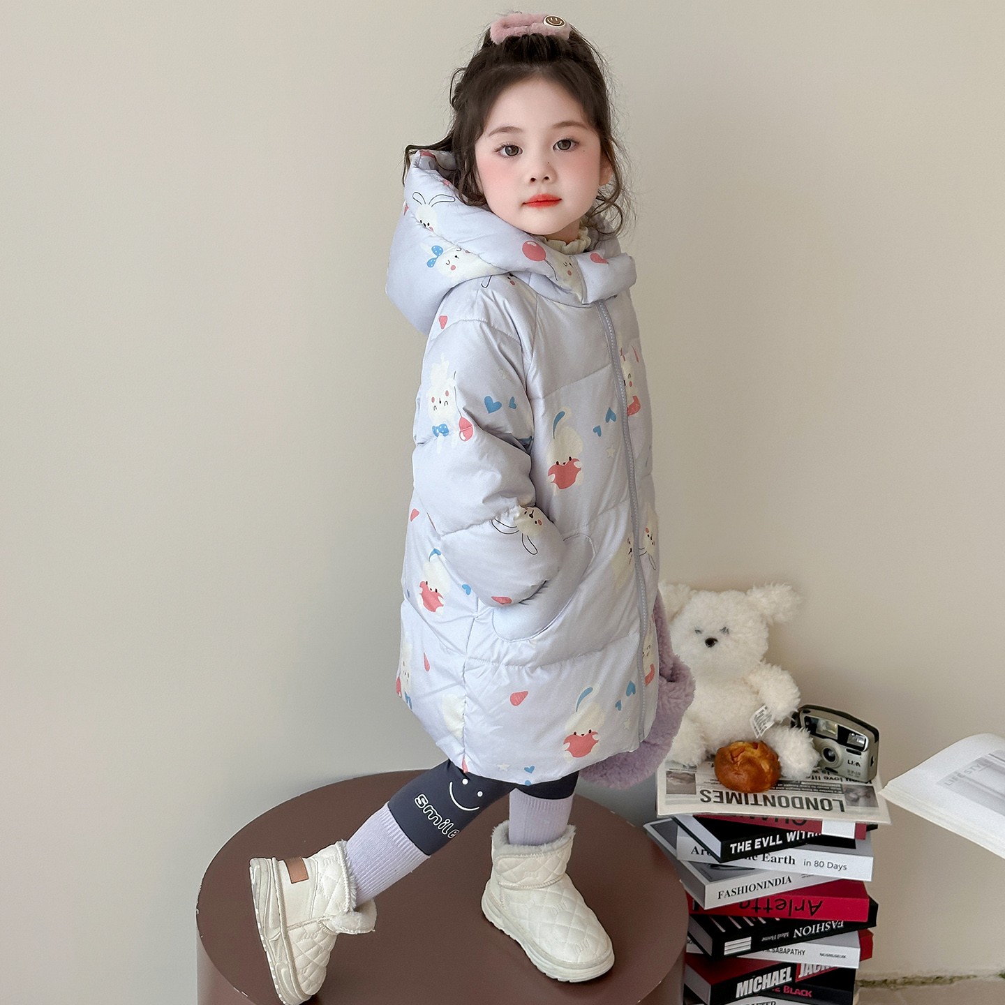 女童羽绒服冬季2025新款女宝宝白鸭绒棉服儿童冬装加厚中长款外套
