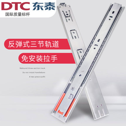 DTC东泰反弹抽屉轨道免拉手三节侧装静音按弹按压式滑道导轨滚珠