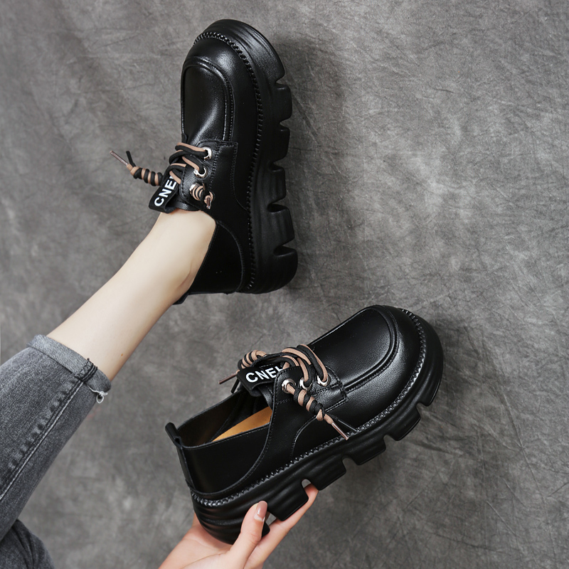 乐福鞋皮鞋女春秋季新款真皮厚底女鞋软底单鞋黑透气休闲增高鞋子