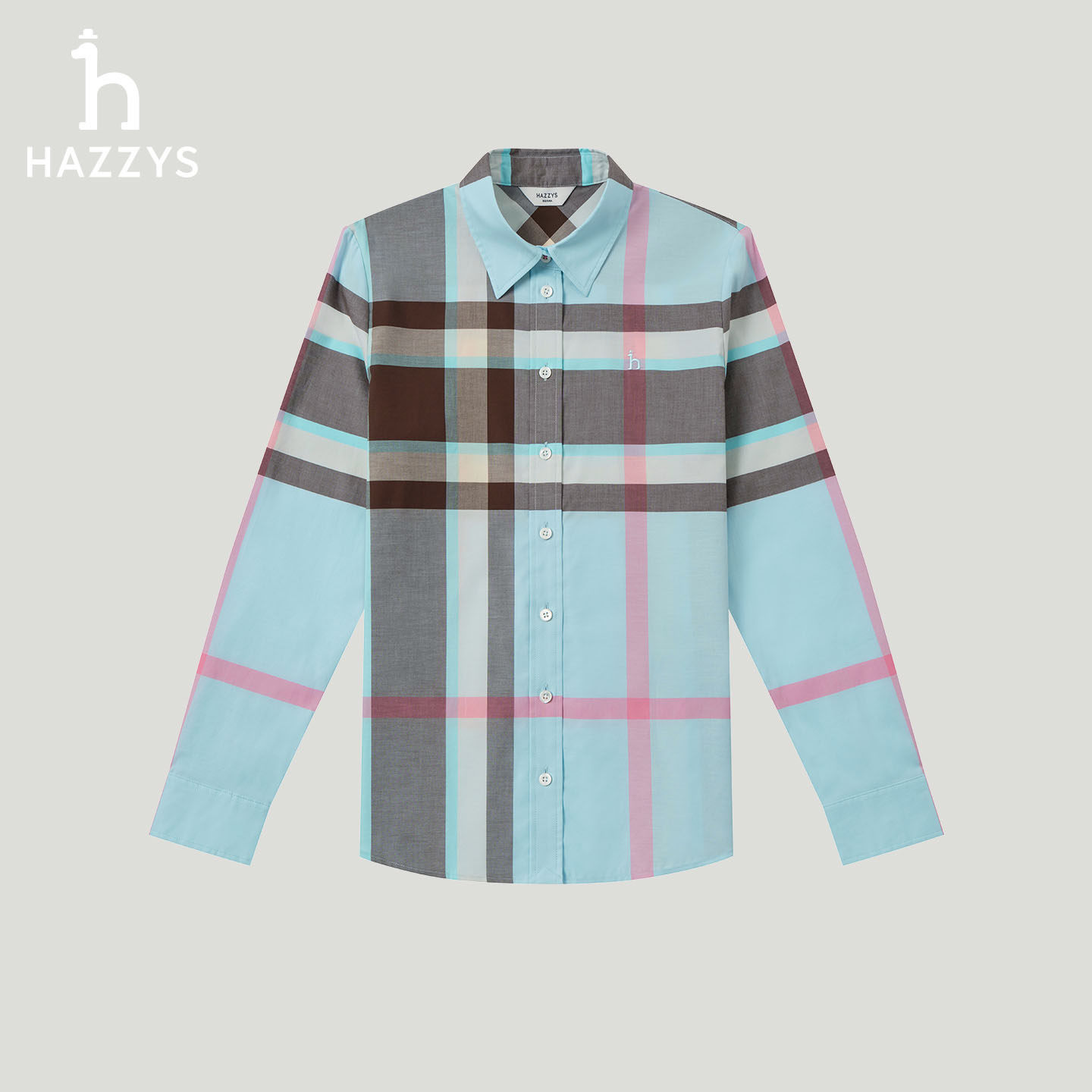 【商场同款】Hazzys哈吉斯2026春夏新品女超大格长袖衬衫休闲上衣